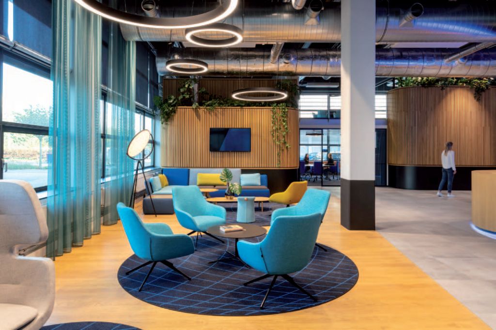In het nieuwe kantoor voor technologiebedrijf EVBox stond duurzaamheid centraal. De Amsterdamse ontwerpstudio D/DOCK koos daarom voor een ecologische wandbekleding van de houtspecialist Carpentier als blikvanger.