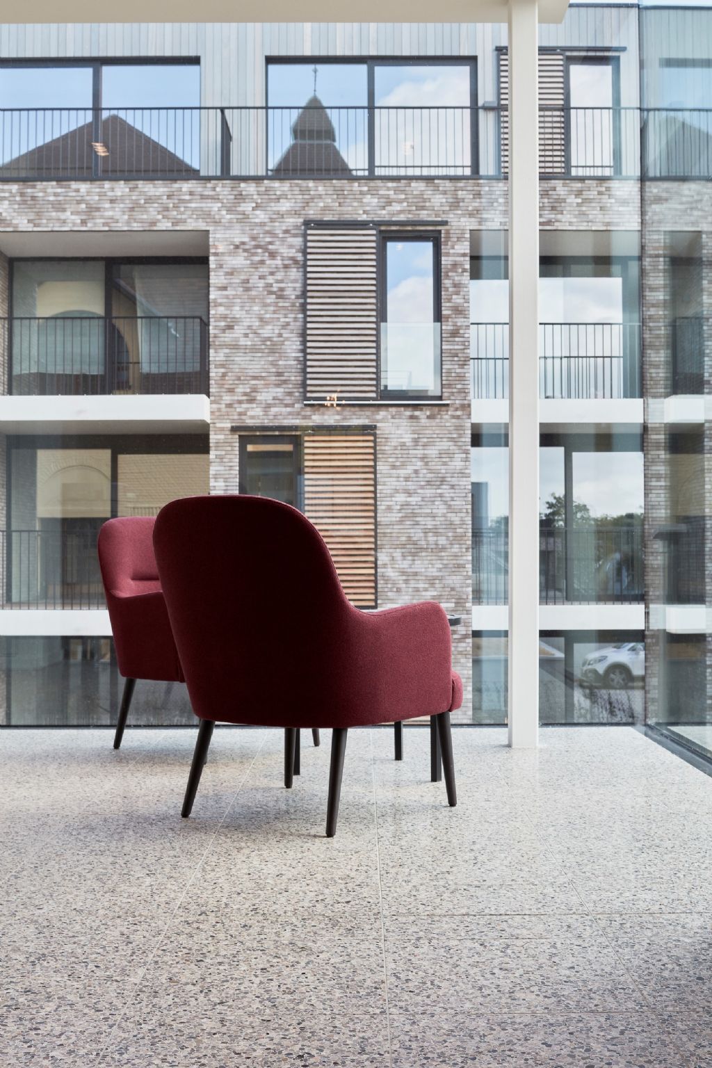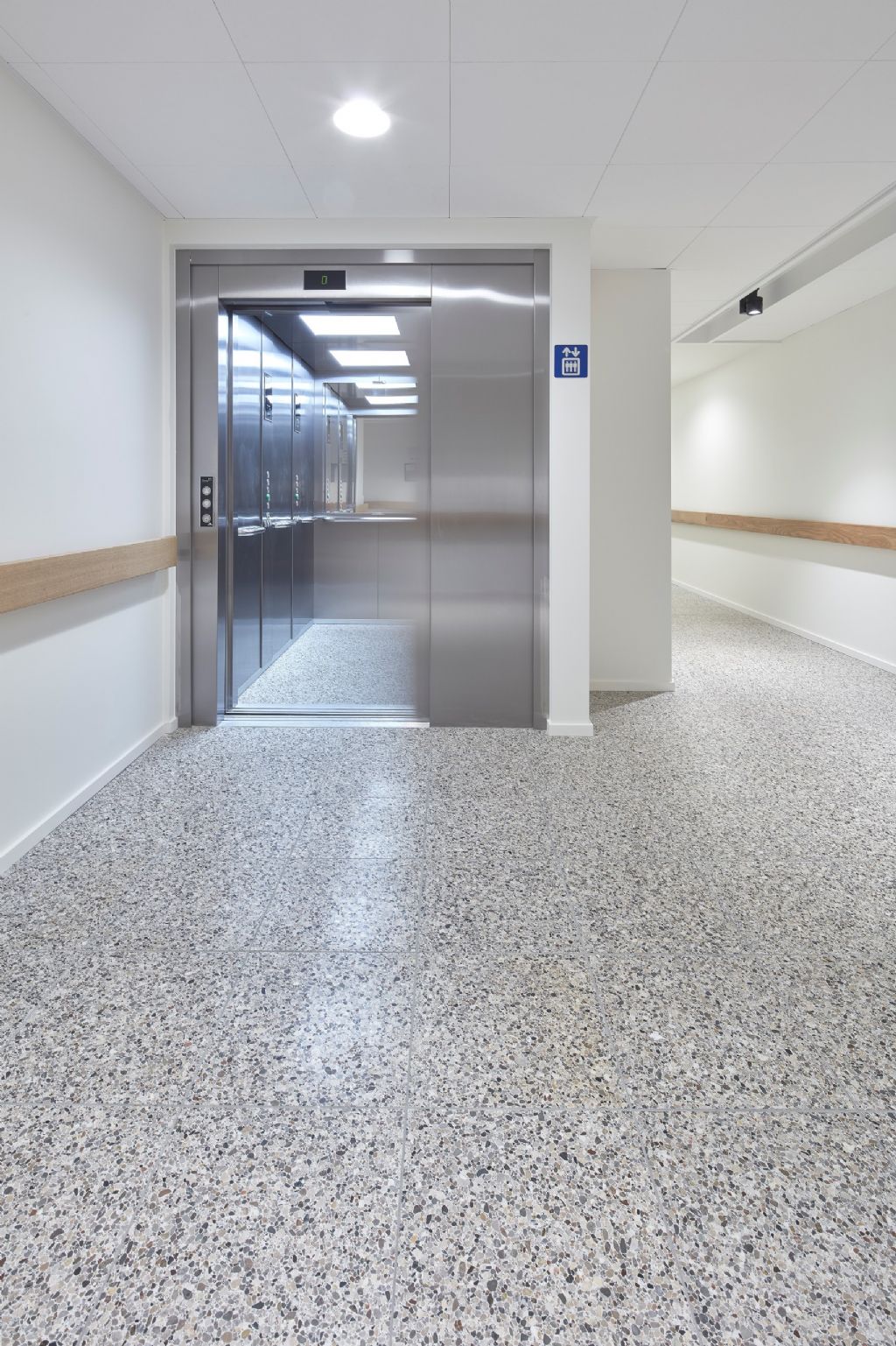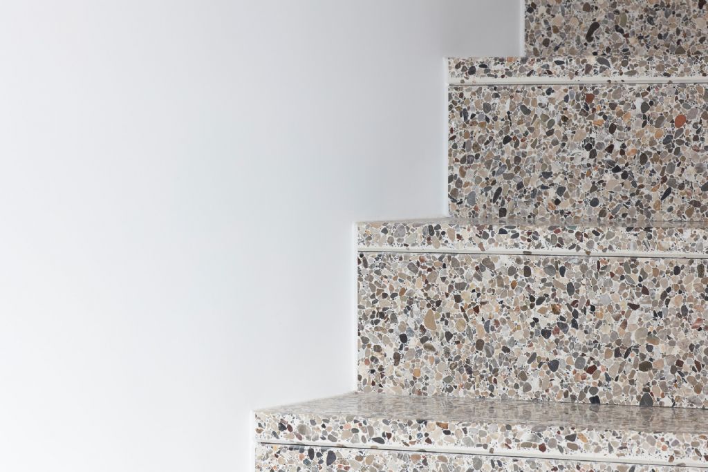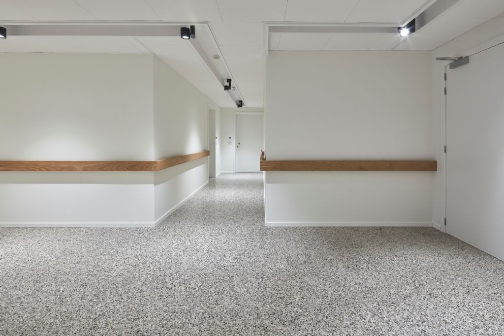 Voor de vloerbekleding in de wandelgangen en gemeenschappelijke zones werden producten van Beltrami Natural Stone gebruikt: Stonite Pebbles. Stonite is een lichte en dunne versie van de alomgekende marmermozaïek (granito-terrazzotegel), een ecologische verantwoord product, samengesteld uit marmerkorrels en kwalitatief Portland wit cement als bindmiddel.