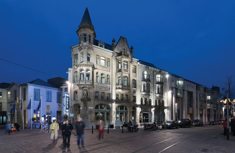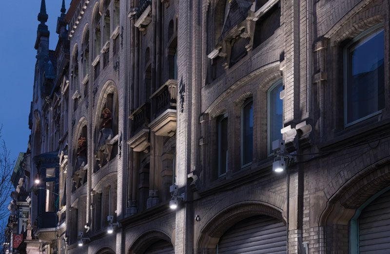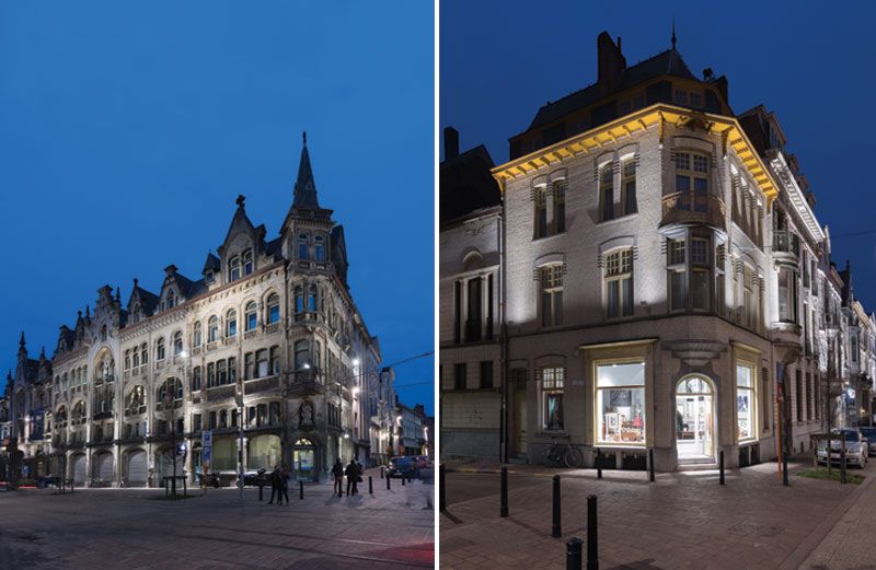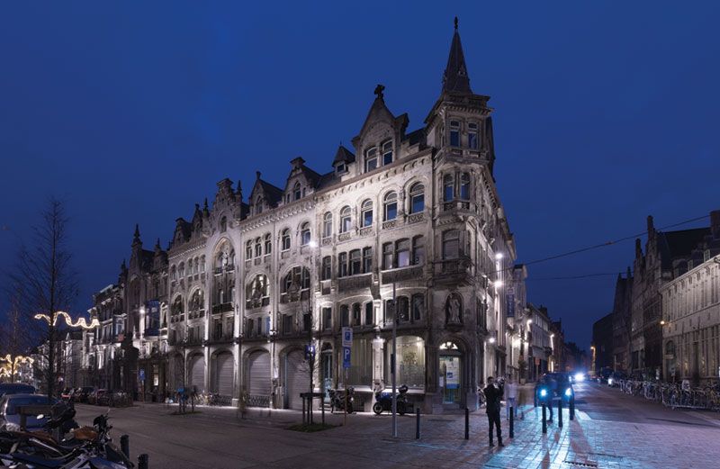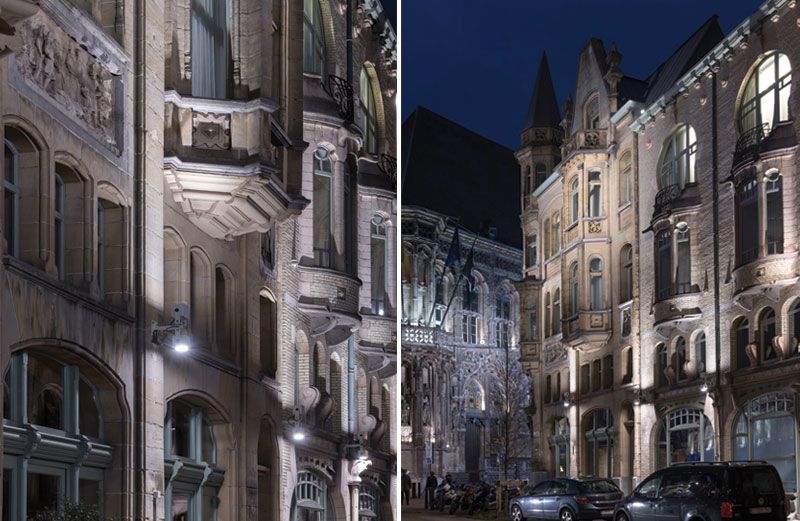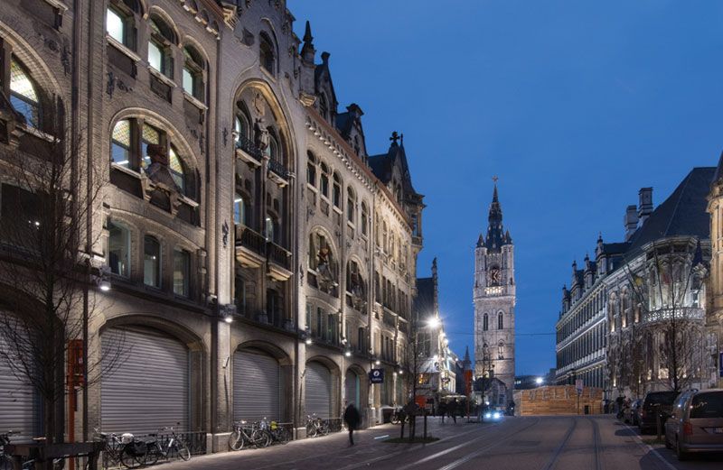 De grandeur van de architecturale parels in de Belfortstraat valt nu nog beter te bewonderen van valavond tot middernacht dankzij 85 SCULPDOT-ledschijnwerpers. De ‘uplighters’ zijn bevestigd op de eerste verdieping om de gevels uit te lichten. Gent wil zo streven naar een aangename visuele beleving van de stad en meer mensen uitnodigen tot een avondwandeling.