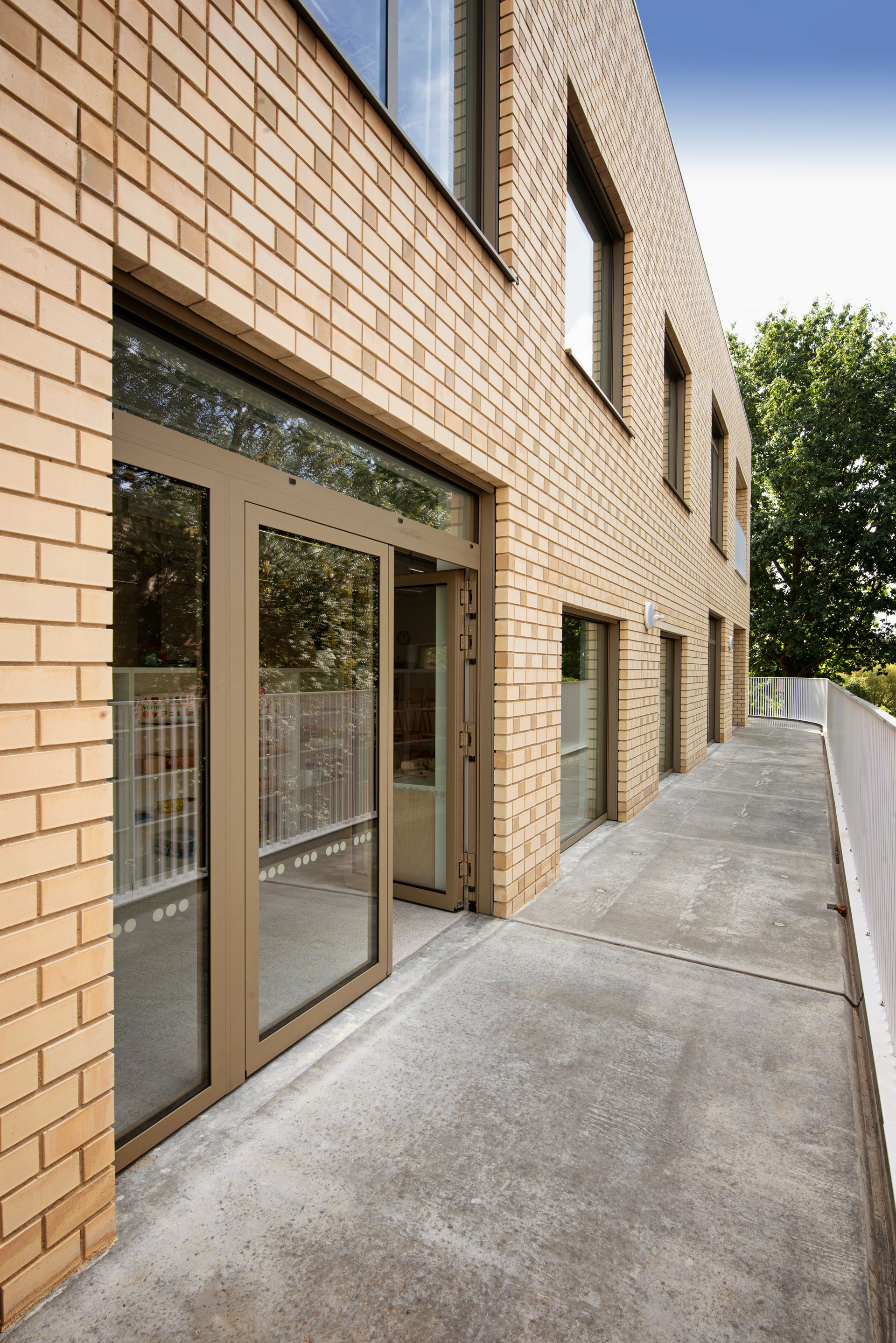 Alipast-verdeler Durama koos voor ramen en deuren in het Star75 systeem. Een strak en sober profiel met zeer goede isolerende eigenschappen. Naast de lucht- en waterdichte karakteristieken van de profielen is de robuustheid belangrijk. Deuren van een schoolgebouw worden niet altijd behoedzaam gebruikt. Daarom zijn de deurvleugels uitgevoerd in bi-metal versie, en dus steviger dan de traditionele opdekprofielen. Bovendien zorgt dit ervoor dat de deuren vlot open en dicht gaan ook als de zon op de aluminium deur schijnt voor een lange periode.