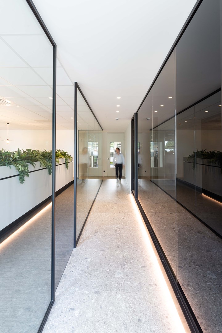 Nu, twee jaar na de voltooiing van de renovatie, zijn Annick en Joris nog steeds zeer tevreden over het eindresultaat. “Als je je auto parkeert tussen het weelderige groen in de voortuin, begint je werkdag eigenlijk al goed. Elke dag wanneer we het gebouw binnenkomen, zijn we trots op wat we samen met Group Jansen hebben bereikt. De combinatie van duurzaamheid, functionaliteit en esthetiek zorgt ervoor dat we een werkomgeving hebben die klaar is voor de toekomst,” besluiten ze.