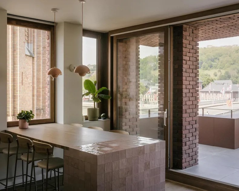 Aan de oevers van de Godefroid Kurth-kade, in een omgeving met een rijke architectonische diversiteit, staat het Kurth-project als een voorbeeld van harmonieuze integratie. Ontworpen door Olivier Fourneau Architectes, combineert dit project kantoren en woningen en creëert het een vloeiende overgang tussen een neoklassiek burgerlijk huis en een art-decokerk uit 1930. De kern van dit architecturale succes ligt in de zorgvuldige materiaalkeuze. De gevelsteen van Steenbakkerij Vande Moortel speelt een sleutelrol als visuele brug tussen beide stijlen, waardoor het gebouw naadloos aansluit bij zijn historische context en tegelijkertijd een eigentijdse uitstraling behoudt.