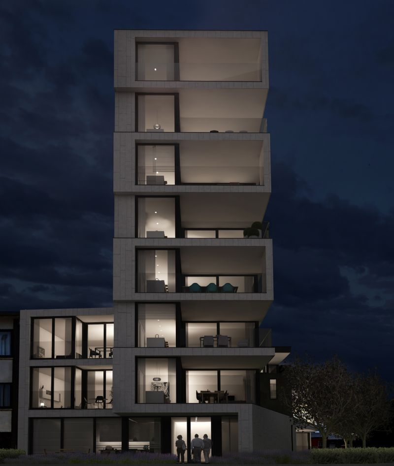 De plannen bestaan uit 8 bouwlagen met 27 appartementen. De toren zal in het oog springen, Didier Appeltans: “Een bewuste keuze, we willen een landmark creëren.” De twee bovenste bouwlagen vormen telkens een loft van ongeveer 200 m². Van de twee oorspronkelijke huizen is er een afgebroken om plaats te maken voor de kelder, de andere doet momenteel dienst als werfkeet.