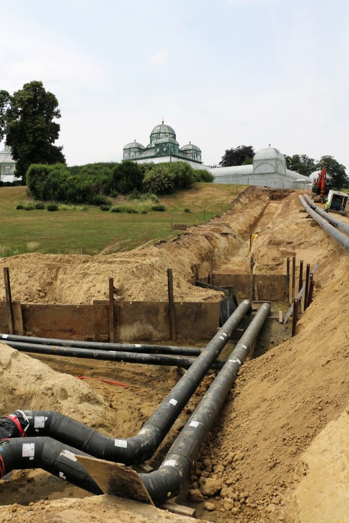 Dit project vereist de aanpassing van tien stookplaatsen van het koninklijk domein van Laken en de aansluiting van het koninklijk domein op het warmtenetwerk. De werken op het koninklijk domein van Laken zelf gingen van start in januari 2020 en zijn indrukwekkend. Er werden grote sleuven gegraven voor de leidingen van het warmtenetwerk dat de stookketels van het koninklijk domein zal verbinden met de verbrandingsoven.