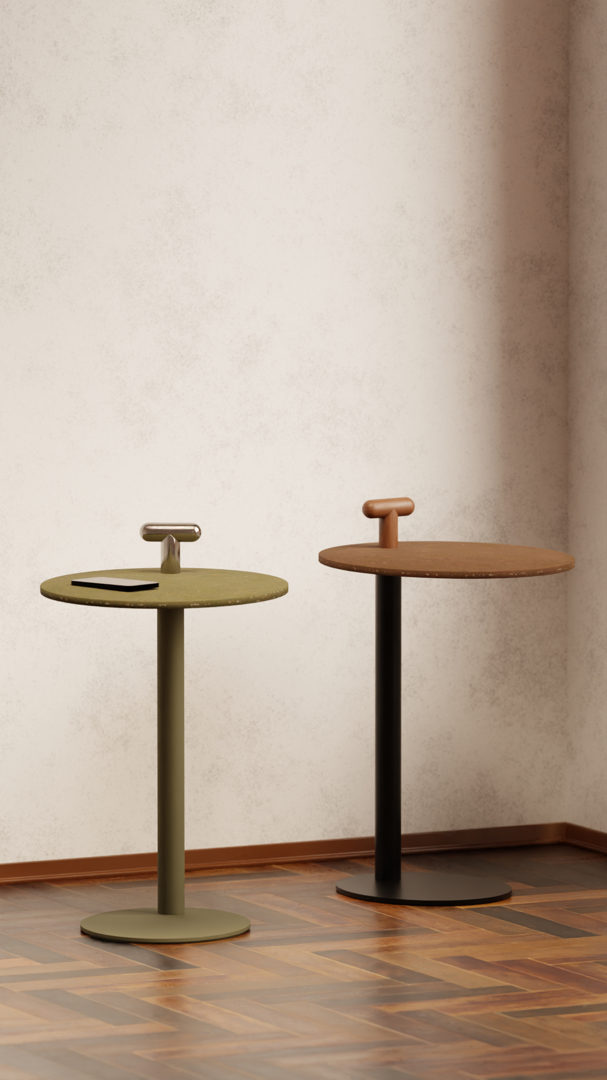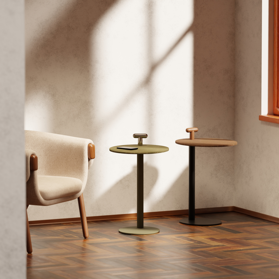 De basis is gepoedercoat in mosgroen, okergeel, nude, zwart of wit, terwijl de iconische bovenhandgreep verkrijgbaar is in aluminium of FSC-gecertificeerd hout (natuurlijk essen, zwart gelakt essen of walnoot). Deze combinatie van materialen staat garant voor lange levensduur, herbruikbaarheid en een esthetische meerwaarde die moeiteloos in diverse interieurstijlen past.