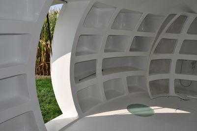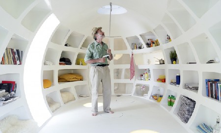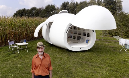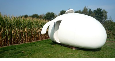 AD S, de uitvoerder van het ontwerp, werkte maar liefst 18 maanden aan dit project, met als resultaat dit glad uitziende werkei. Deze futurische herinterpretatie van de caravan bestaat volledig uit polyester en is uitgerust met kitchenette, bakdamer én een slaapnis. Toegang tot het ‘ruimteschip’ verkrijgt men via de neus die mechanisch openklapt en aldus als een poort fungeert. Door de vrij uitgebreide voorzieningen binnenin –keuken, verlichting, bed, badkamer en meerdere nissen om gerief in op te bergen, krijgt deze mobiele unit een multifuncitoneel karakter. Het kan zonder enige moeite ingezet worden als kantoor, als gastenkamer, als receptie, of zelfs als futuristisch tuinhuis…