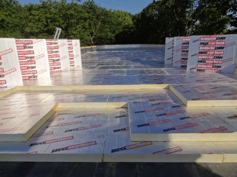 Jazeker. Isolatie kan op verschillende manieren geplaatst worden: met PU-lijm, mechanisch bevestigd, met warme bitumen, met bitumineuze koudlijm of losliggend geballast. Afhankelijk van het type ondergrond zijn bepaalde plaatsingsmethoden meer of minder geschikt. Op een steeldeck of een houten ondergrond ligt mechanische bevestiging voor de hand, maar op een betonnen ondergrond is mechanisch bevestigen geen sinecure en behoorlijk arbeidsintensief. Een verlijmd systeem is in dat geval een stuk eenvoudiger te plaatsen. Bij koude of vochtige weersomstandigheden geven we de voorkeur aan gevlamlaste systemen, mechanisch bevestigde systemen of losliggende geballaste systemen. Deze laatste optie is dan weer minder geschikt voor een steeldeck, omdat je dan het gewicht van de ballast in rekening moet brengen bij het dimensioneren van je dakstructuur. In het geval van groendaken, waarbij de onderliggende dakdichting bovenal vocht- en wortelwerend moet zijn, dringt bijvoorbeeld de combinatie PIR/PUR-warm bitumen zich op. Dakdekkers die niet graag met de vlam werken, kunnen dan weer gebruikmaken van bitumineuze koudlijm. Aan het eind van de rit is dus niet enkel de gekozen isolatie van belang, maar ook het toegepaste plaatsingssysteem.
