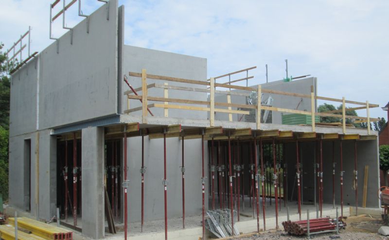 Wie werkt met prefab-beton verzamelt veel van de hiervoor genoemde voordelen. Bij ‘The concrete house’ uit Olen bijvoorbeeld bouwen ze lage energiewoningen in gladde geprefabriceerde betonelementen. De muren en vloeren zijn met elkaar verbonden met een sterke, gewapende, betonnen verbinding en hebben dus ook een grote draagkracht en overspanning, tot wel 7 meter. Dat is veel groter dan standaardwelfsels en geeft de bouwheer meer indelingsvrijheid. Het gelijkvloers kan één grote leefruimte worden, zonder nood aan dragende muren. Prefab-beton is dus ook erg geschikt voor metershoge ramen, ideaal voor wie houdt van open, moderne architectuur. Dat is wel ook wel nodig om prefab-beton toe te passen, want bij andere stijlen, zoals typische Vlaamse pastoriestijl, is dit bouwmateriaal niet concurrentieel. Zorg er ook voor dat alles goed voorbereid is voor de woning geplaatst wordt, zoals de locatie van de leidingen en de stopcontacten. Bouwen in prefab-beton gaat heel snel, maar het is moeilijk om achteraf aanpassingen aan de ruwbouw uit te voeren.