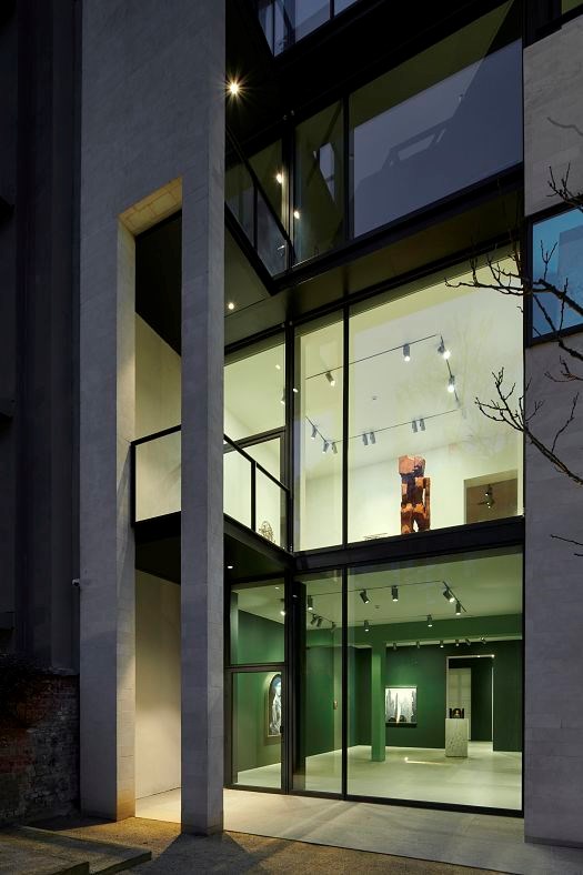 Omdat de niveaus van het nieuwe gebouw perfect zijn uitgelijnd op de bestaande verdiepingshoogtes van het herenhuis verloopt de overgang vloeiend. Bezoekers kunnen zo een architecturale wandeling maken doorheen de hele galerij en zullen verschillende ruimtes tegenkomen die telkens anders zijn. De plafondhoogtes variëren van 3,10 meter tot zelfs 9,10 meter en kunnen zo de perfecte achtergrond zijn voor zowel sculpturen en klein drukwerk dat vraagt om een kleinere kamer als voor monumentale installaties of schilderijen die een groot vertrek nodig hebben.