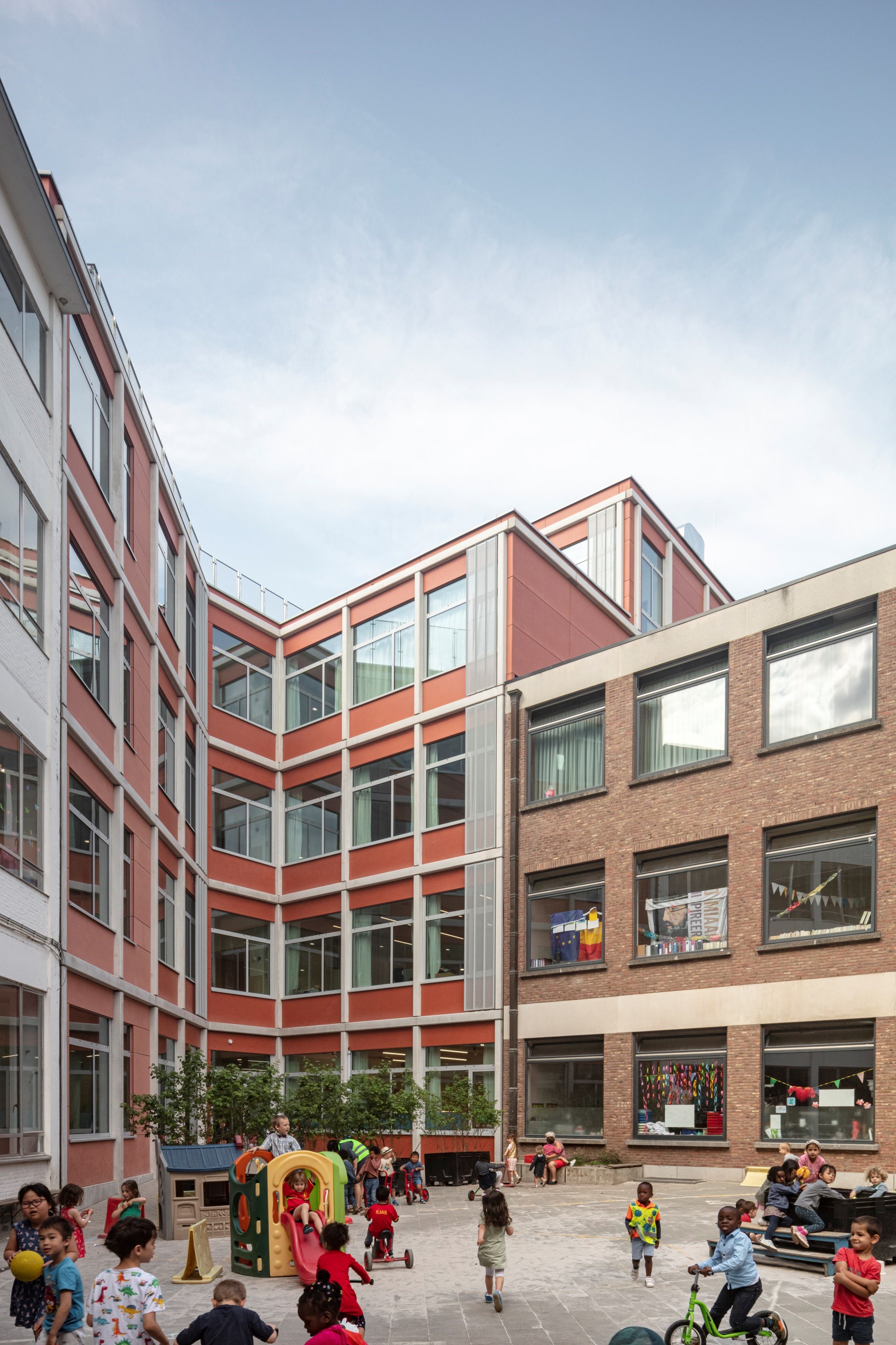 Ruim een decennium geleden stelde LAVA Architecten een masterplan op en beschouwt van daaruit zijn ontwerpen van alle bouwopdrachten. De nieuwe schoolvleugel vormt het sluitstuk. Het maakt dat alle verdiepingen rondom rond toegankelijk worden en de horizontale schoolwerking per verdiep werkelijkheid wordt. De kleuterschool zal op het gelijkvloers plaatsnemen. De lagere school op de eerste verdieping terwijl de tweede, derde en vierde verdieping bestemd zijn voor het secundair.