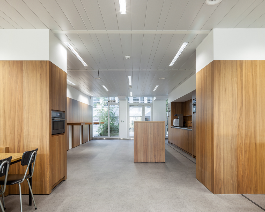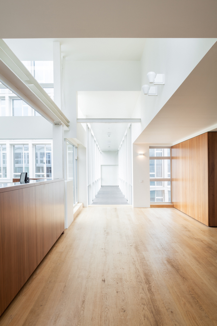 Bovenlichten tussen de gangen en kantoren zorgen voor natuurlijke lichtinval in de circulatieruimtes. Op elke verdieping zijn ruime keukens en loungehoeken ingericht, die informeel overleg en spontane ontmoetingen stimuleren.