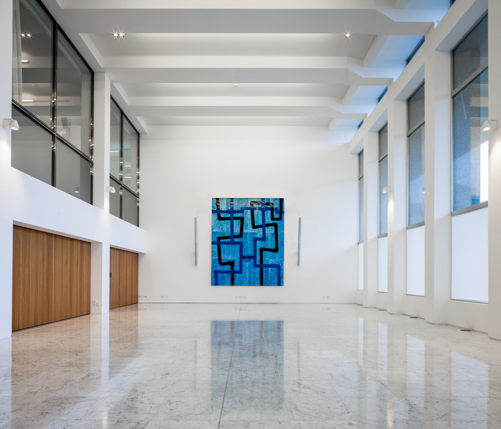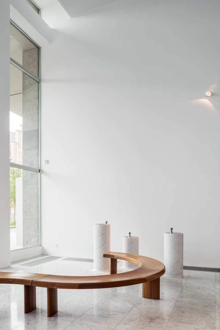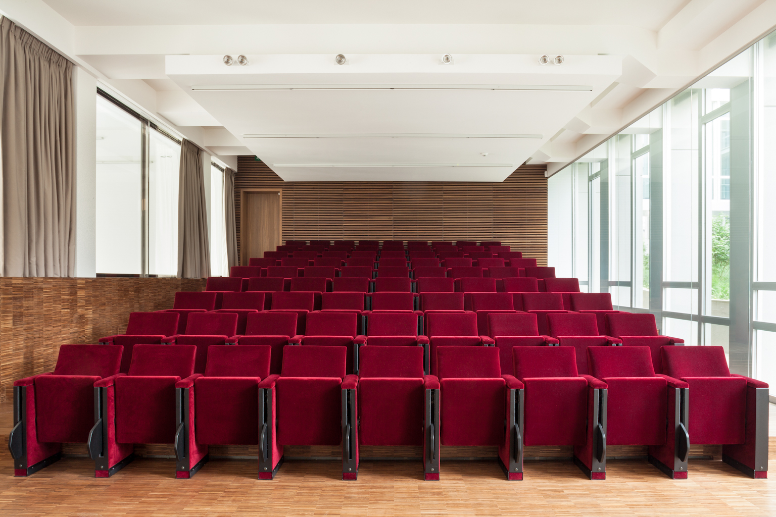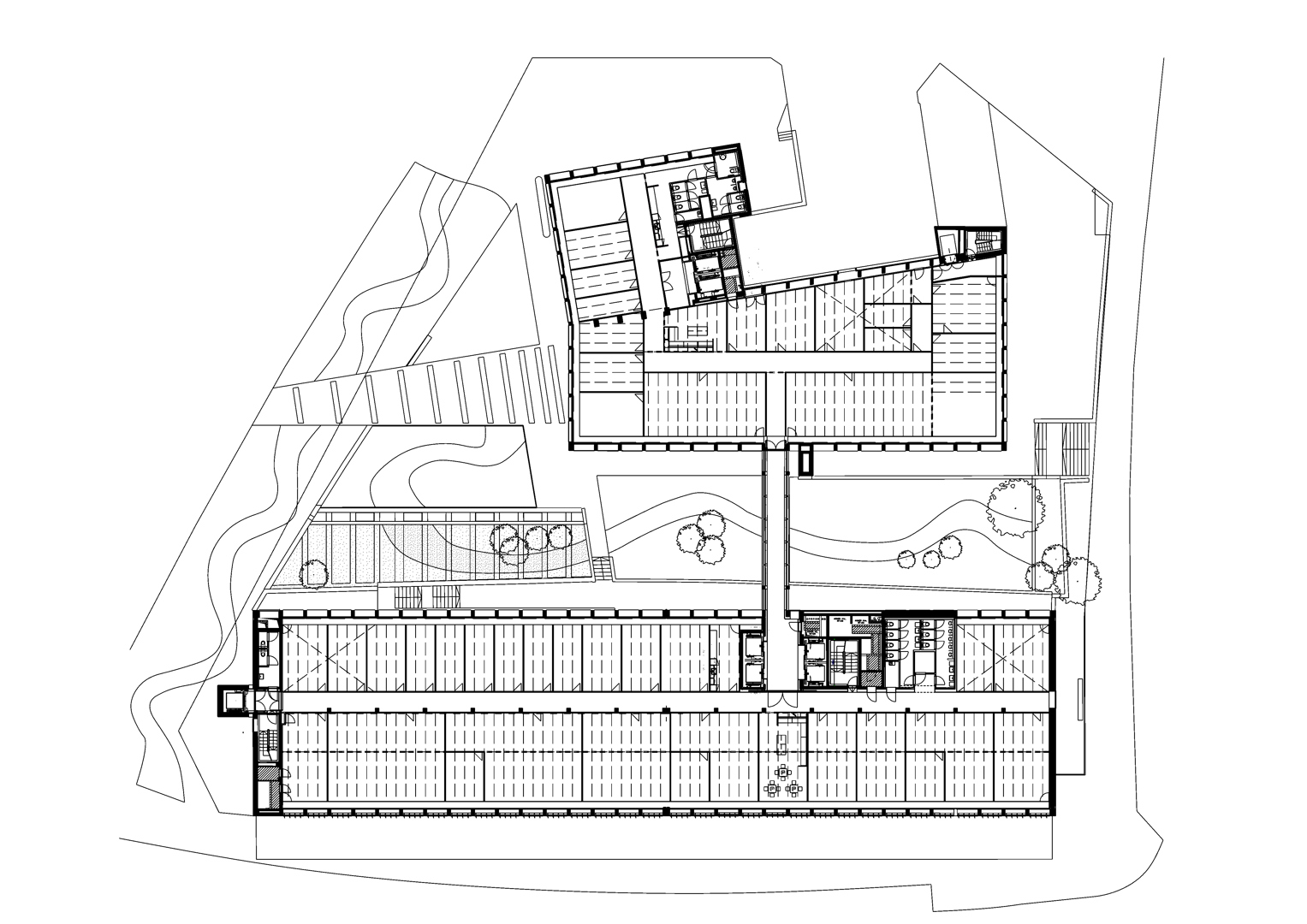 De space-planning vertrekt vanuit een logische verdeling van de functies binnen het gebouw. Op het gelijkvloers bevinden zich alle publieke ruimtes, waaronder een transparante lobby, een auditorium en een tentoonstellingsruimte. Dankzij een dubbele gevelconstructie met vitrines is er visuele interactie met de stad, zonder in te boeten aan privacy.