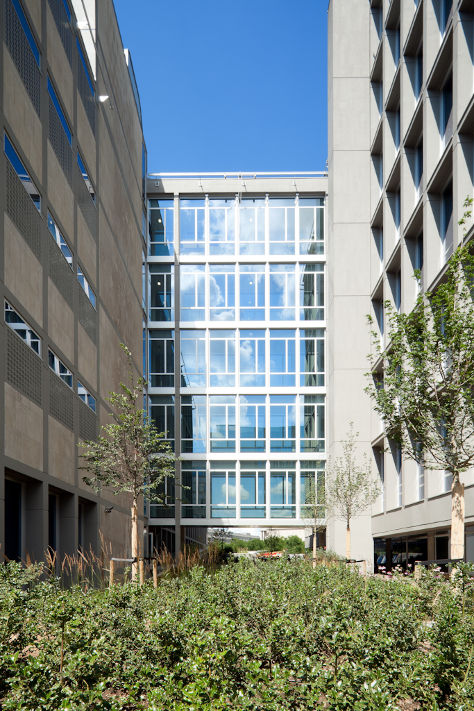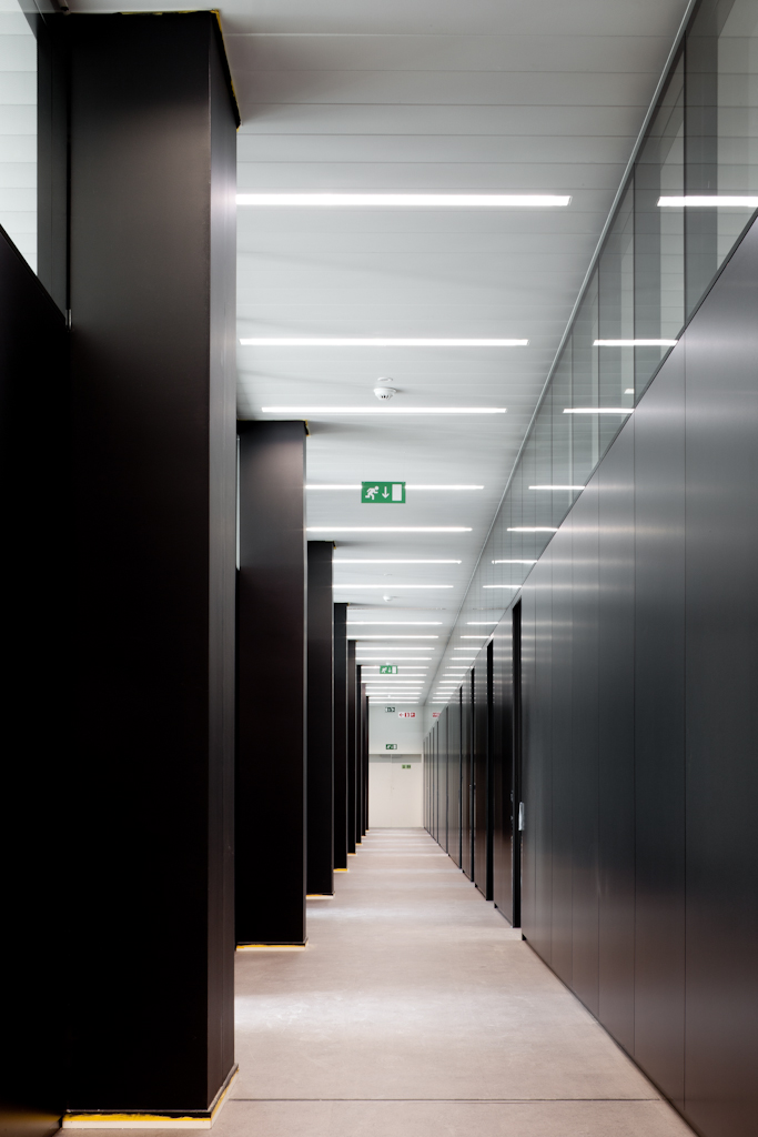 Deze ingreep zorgde bovendien voor meer flexibiliteit in de indeling van de werkvloeren. De oude en nieuwe gevels vormen zo een subtiel samenspel van erfgoed en hedendaagse techniek.
