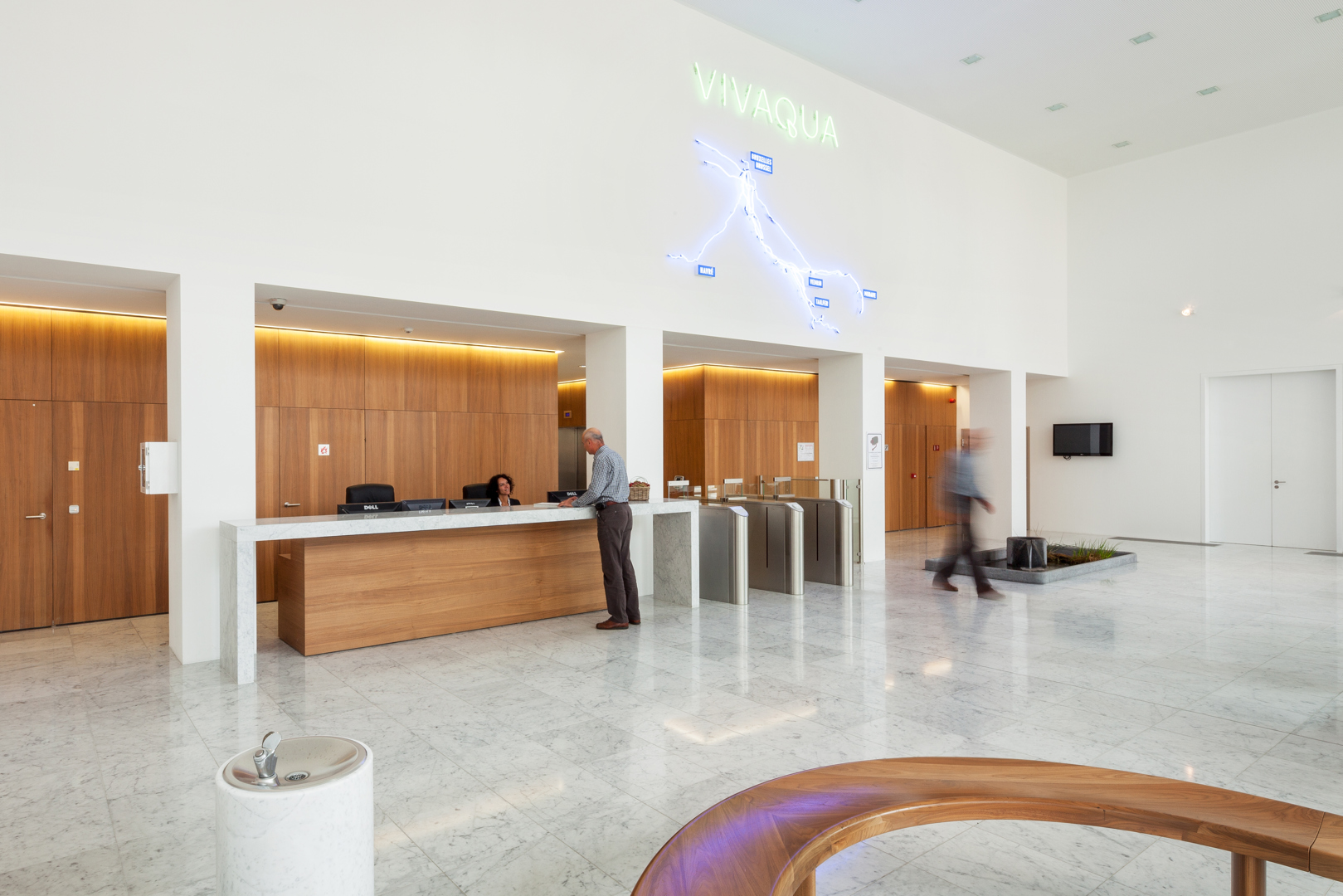 De Brusselse watermaatschappij Vivaqua besloot haar hoofdkantoor onder te brengen in een markant gebouw aan de Keizerinlaan, vlak bij het Centraal Station. Het voormalige Telexgebouw, een ontwerp van Léon Stynen en erkend als bouwkundig erfgoed, werd volledig gerenoveerd en heringericht. De ingreep besloeg meer dan 15.000 m² en omvatte de volledige binneninrichting, inclusief lobby, publieksfuncties, een auditorium, kantoren en vergaderzalen.