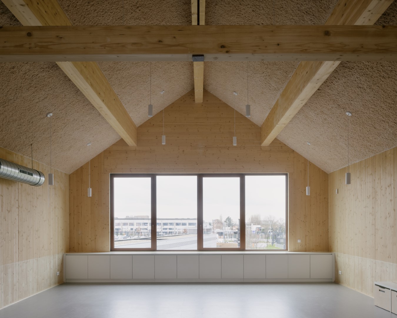 Door consequent gebruik te maken van een houten prefab constructie is zowel de bouwtijd als de overlast voor de school geminimaliseerd. De ritmische draagstructuur laat flexibele invullingen toe en de mogelijkheid om het gebouw in zones af te sluiten. Zo kan ook na schooltijd optimaal gebruik worden gemaakt van de lokalen. De Schatkist van morgen wordt dus niet alleen een school, maar zal ook ruimte bieden voor de buurtbewoners.