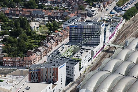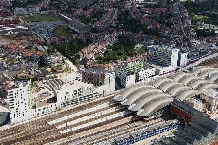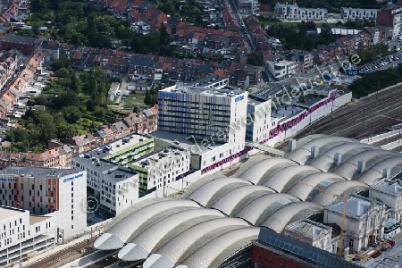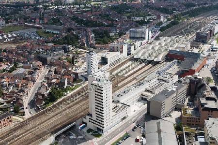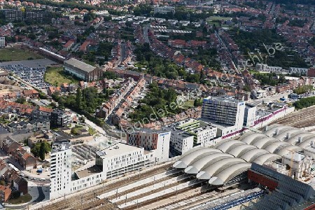 De bijna opgeleverde Kop van Kessel-Lo is nu al de nieuwe architecturale trots van Leuven. De unieke Euramica-coating, waarvan de tint evolueert naargelang de intensiteit van de lichtinval, geeft letterlijk kleur aan de eens zo grauwe achterkant van het station. Vlaanderenvanuitdelucht legde dit alles vast op enkele mooie luchtfoto's.