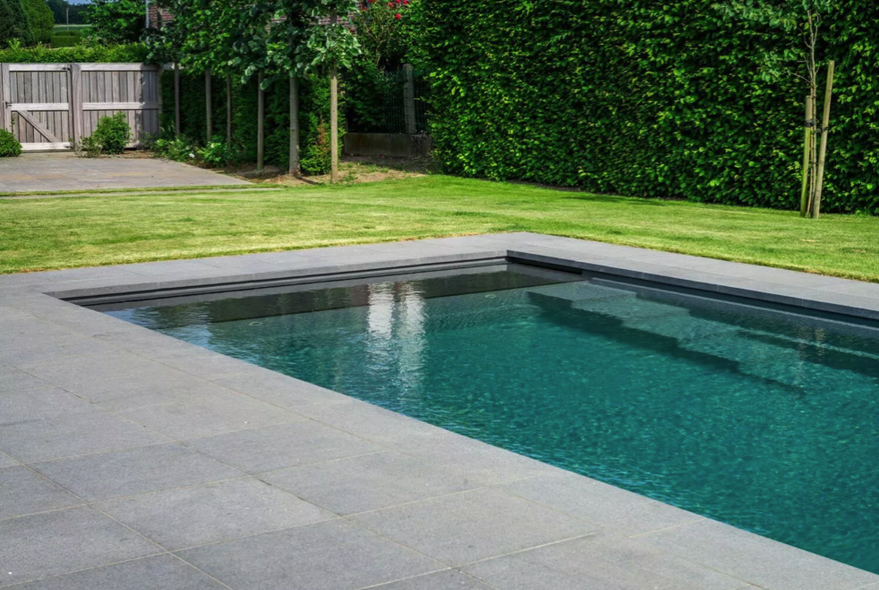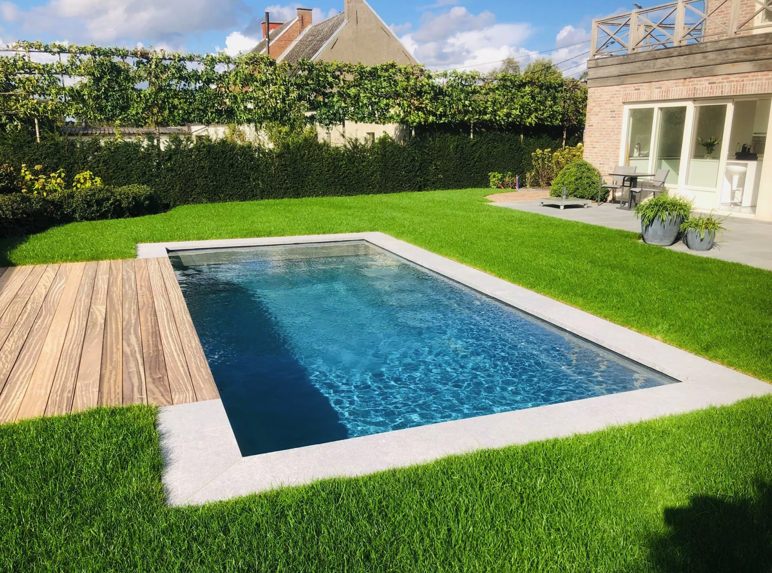 Boordstenen rondom een zwembad vormen als het ware de kers op de taart. Ze zijn niet alleen mooi, maar ook functioneel. Ze houden immers het spatwater onder controle en bieden ook veiligheid door hun stroeve oppervlak. Zeker met spelende kinderen en/of huisdieren rond het zwembad is dit anti-slipeffect een echte troef.