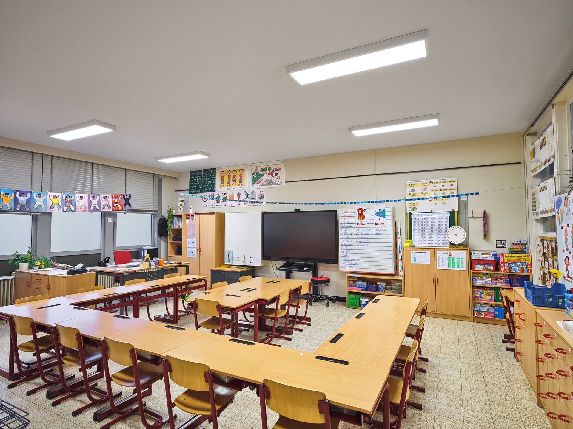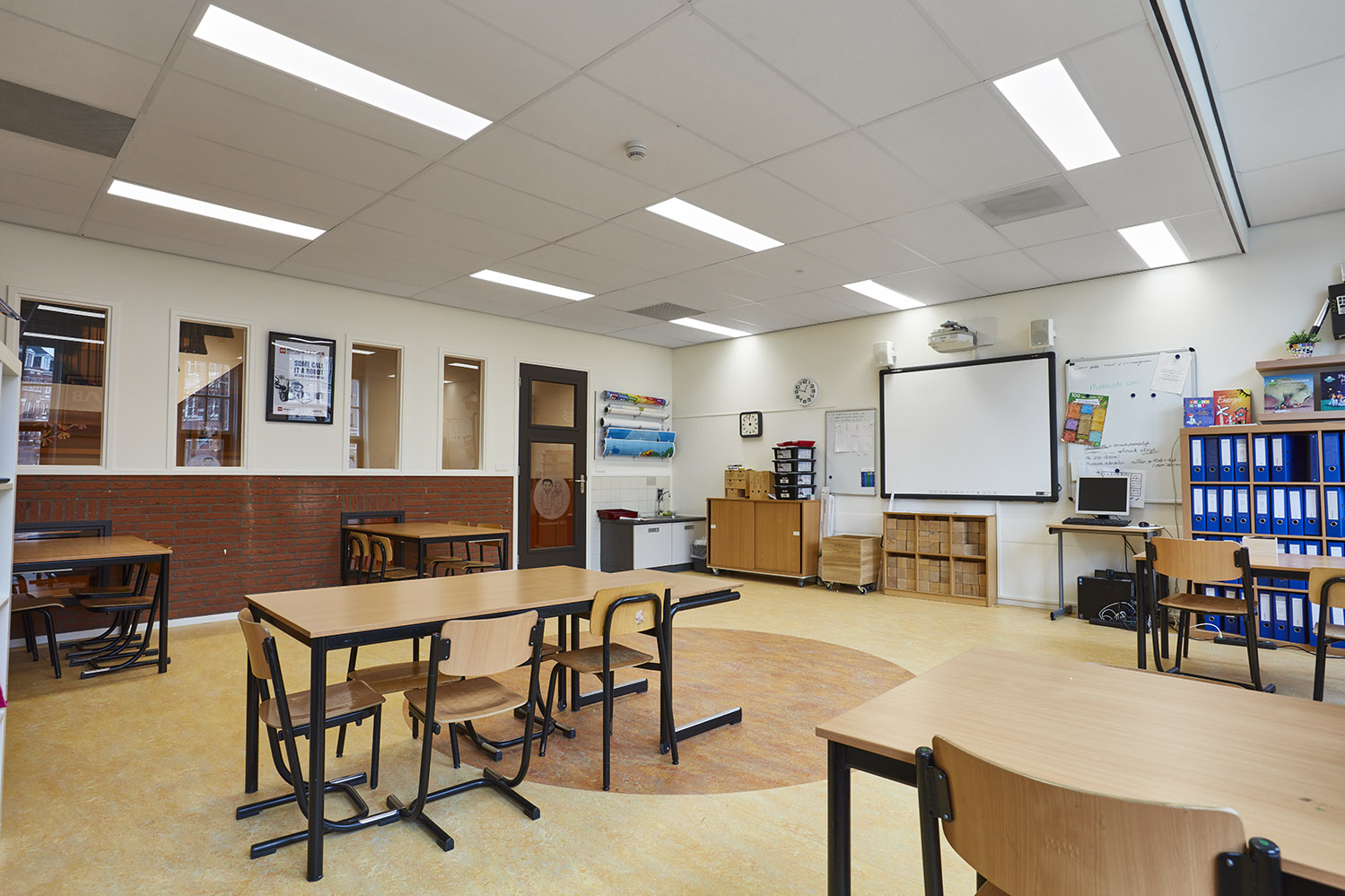 Een ander voordeel is het comfort dat Smart Lighting biedt. Dankzij daglichtregeling wordt de verlichting aangepast aan het natuurlijke lichtniveau, wat vermoeidheid vermindert en het welzijn van leerlingen bevordert. Door de verlichting te synchroniseren met het natuurlijke daglicht, ontstaat een harmonieus en comfortabel verlichtingsniveau gedurende de dag, wat de alertheid en productiviteit van leerlingen ten goede komt. Bovendien is Human Centric Lighting (HCL) geïntegreerd in het systeem, wat het natuurlijke ritme van het menselijk lichaam ondersteunt en een positief effect heeft op de concentratie en het welzijn van leerlingen. HCL past de kleurtemperatuur en helderheid van de verlichting aan gedurende de dag, wat resulteert in een natuurlijkere en gezondere leeromgeving.