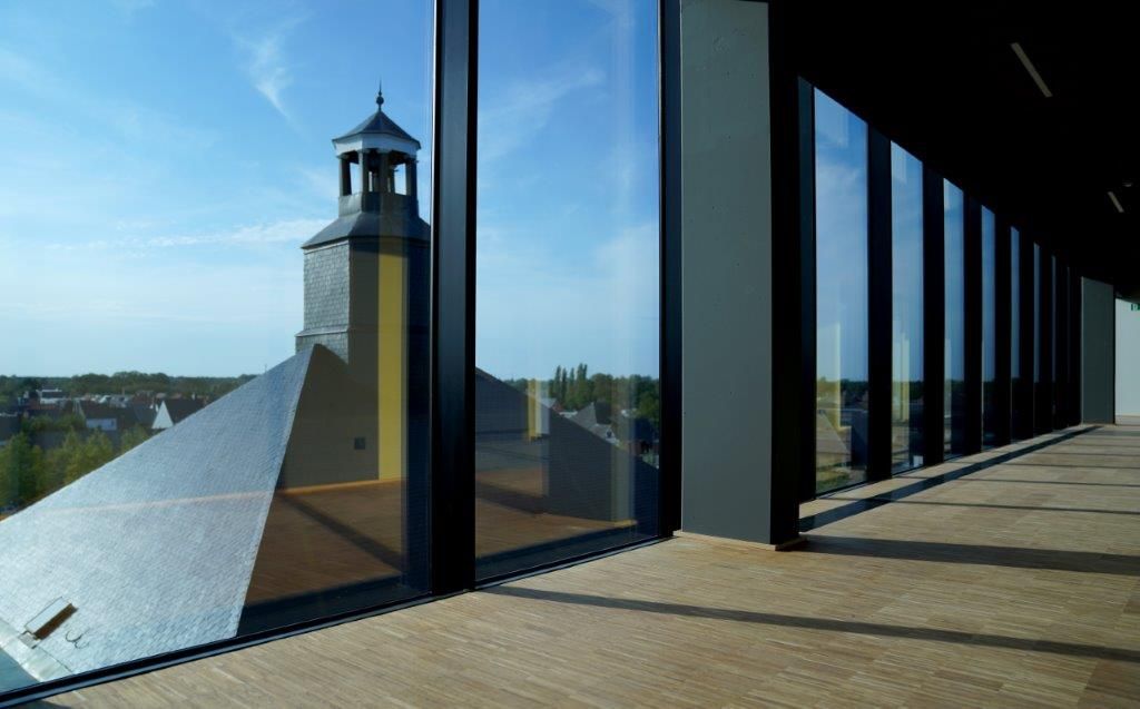 Transparantie, multifunctionaliteit, flexibiliteit en een minimale ecologische voetafdruk: dat waren de kernwaarden bij het ontwerp en de realisatie van het nieuw administratief centrum van Leopoldsburg, waar de dienstverlening van de gemeente en het OCMW voortaan gecentraliseerd worden. De verregaande ambities op functioneel en energetisch vlak zijn gekoppeld aan een strakke, moderne look die de unieke charme van het historische gedeelte niet hypothekeert, maar net extra in de verf zet. Een knappe vondst van architectenbureau UAU collectiv, hoofdaannemer Van Roey en studiebureau ABT, die de krachten bundelden om deze bijzondere Design & Build-opdracht tot een goed einde te brengen.
