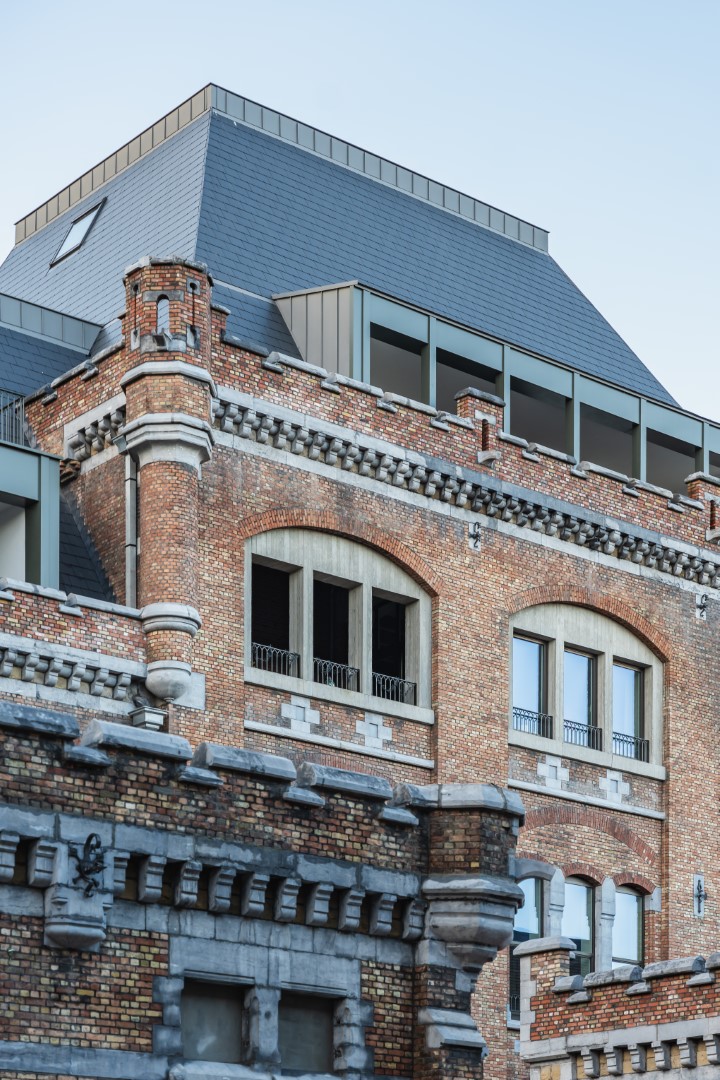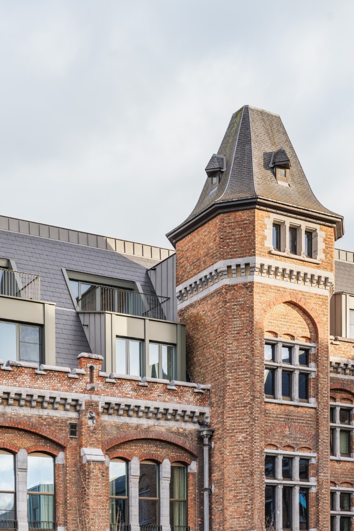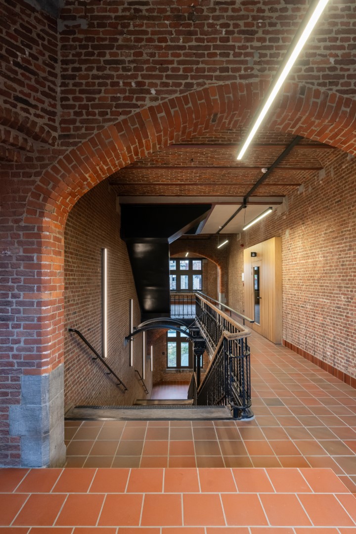 Met zijn dikke muren, kantelen, hoektorens en schietgaten leek De Leopoldskazerne voor zijn reconversie op een versterkte burcht. De opdracht was dan ook: breek dit verdedigingsbolwerk open en tover het om tot een uitnodigend trefpunt.