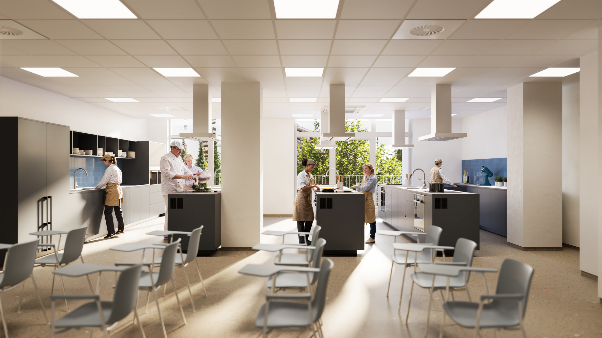Technisch en akoestisch worden de sportzalen ontworpen voor intensief en multifunctioneel gebruik, met duurzame materialen en aandacht voor comfort en veiligheid. Bureau De Fonseca zorgt voor akoestische optimalisatie, zodat naast sport ook lessen en culturele activiteiten parallel kunnen plaatsvinden zonder hinder. Deze gedeelde sportinfrastructuur versterkt de maatschappelijke return van het project en speelt in op de stijgende vraag naar toegankelijke beweegruimte in de stad.