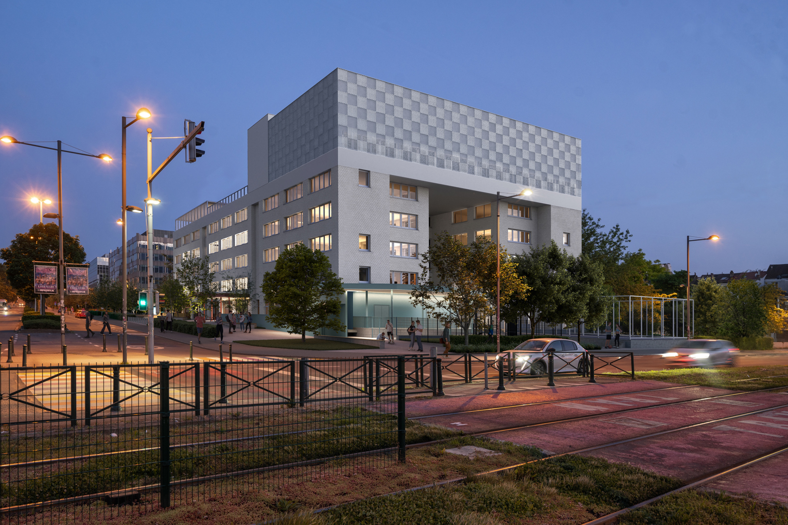 In Elsene wordt het voormalige Beobank-gebouw aan de Pleinlaan herbestemd tot een innovatieve onderwijscampus, ontworpen door B2Ai. Het project is in opdracht van de Vlaamse Gemeenschapscommissie (VGC) en kwam tot stand in samenwerking met partners als Befimmo, BAM Interbuild, Bopro, Bureau De Fonseca en SECO. De transformatie levert niet alleen nieuwe infrastructuur op voor twee secundaire scholen en een gemeenschapscentrum, maar ook een sterk signaal over circulair bouwen, gedeeld ruimtegebruik en toekomstgericht onderwijs in Brussel. Deze zomer werd de symbolische eerste steen gelegd. De opening is gepland voor september 2026.