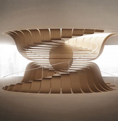 De juryleden van de EeStairs Design Competition voor trappen en ballustrades hebben de drie genomineerde designs van beide categorieën bekend gemaakt. De kanshebbers in de categorie Corporate Staircase zijn Möbius van 4A Four Architects, Tesseract Stairs van Simaxiom en Interstellar van Y.S. Lam. In de categorie Repeatable Balustrade dingen Sine Balustrade en Weave Balustrade van C. Comanns en WYV van M. Kocharyan mee naar de prijzen. De winnaars worden op 4 maart 2016 aangekondigd op de website van de wedstrijd.