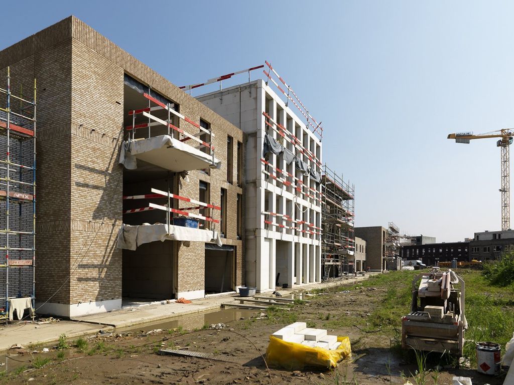 Voor de appartementsgebouwen wordt gewerkt met een doorlopende vloerplaat. De gevelopbouw bestaat uit gevelsteen, 12 cm PUR isolatie en 15 cm Silka elementen en gipsafwerking. Vanhout is aannemer ruwbouw en bouwt al jaren met het Silka bouwsysteem. Ing. Tim Jacobs was projectleider voor Vanhout: “Silka biedt voor dit soort project de snelste en goedkoopste oplossing. Er is vandaag zelfs een prijsvoordeel als gevolg van het beperkte pleisterwerk”.