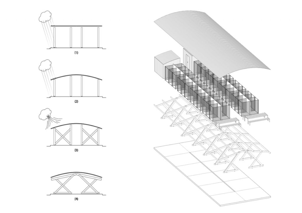Om aan de groeiende vraag naar ‘tuinieren in de stad’ te voldoen, schreef de stad Antwerpen eind 2017 een ‘Design & Build’- wedstrijd uit. Het doel was om een luifel te ontwerpen die onderdak biedt aan tuinbergingen. Het ontwerp van Architectenburo Cuyvers + co en aannemer KvD werd geselecteerd voor uitvoering.