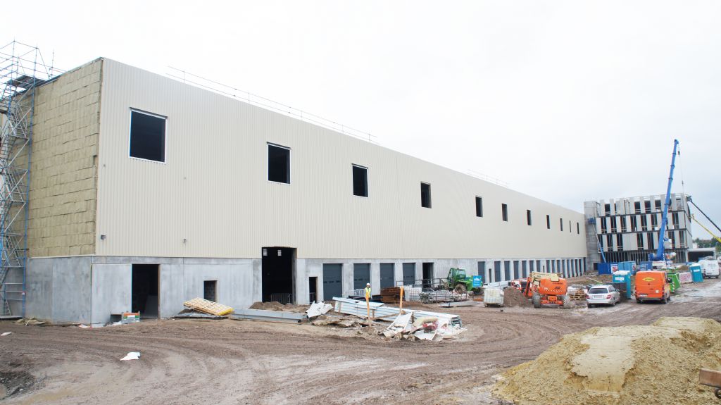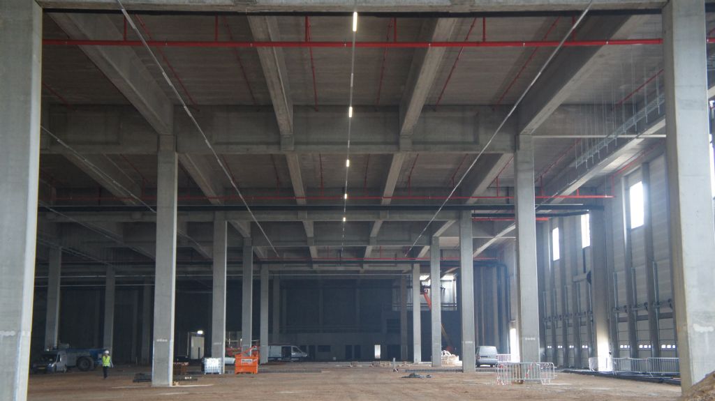 De meeste onderdelen van het complex bestaan uit een staalconstructie, maar de grootste hal wordt in beton vervaardigd zodat het dak als parking kan dienen. Dat is wel minder makkelijk voor de installateur. Janssens: “Beton is natuurlijk vast en solide, zodat je minder vrijheid hebt. Je moet de kolommen en de uitsparingen volgen en bent veel meer gebonden aan de opstelling van het gebouw.”