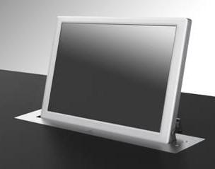 De Arthur Holm inclineerbare en opklapbare monitor met zijn massief aluminium behuizing biedt een elegante oplossing voor integratie in vergadertafels. De monitor kan naar behoefte eenvoudig in de tafel opgeborgen worden of eruit geschoven worden.