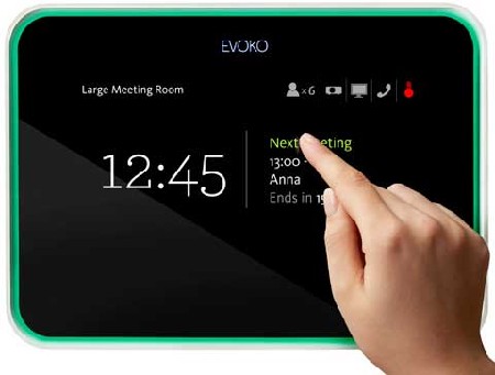 Evoko Room Manager is een elektronisch hulpmiddel bij het reserveren en beheren van de verschillende ruimtes binnen een organisatie. Hierdoor heeft men altijd en overal inzicht in de bezetting en beschikbaarheid van ruimtes, zodat men dubbele lokaalboekingen en onnodige onderbrekingen tijdens lopende vergaderingen kan voorkomen. Evoko Room Manager is een touch display toestel dat eenvoudig te installeren en te gebruiken is, aangezien het volledig in Microsoft Outlook geïntegreerd kan worden. Zodoende is er geen extra server nodig en hoeft er geen nieuwe software geïnstalleerd te worden. Doordat Evoko Room Manager in Microsoft Outlook geïntegreerd is, heeft iedereen ook meteen toegang tot en inzicht in de planning van de ruimte(s). Dit maakt het voor de gebruikers mogelijk om ook vanachter de PC een ruimte te reserveren, een meeting te annuleren en de gereserveerde vergadertijd aan te passen. De wijzigingen worden direct in Outlook en op het aanraakgevoelige scherm van de Room Manager getoond. Het is natuurlijk ook mogelijk om even langs de vergaderruimte te lopen en ter plekke reserveringen en wijzigingen door te voeren. De beschikbaarheid van een ruimte is op afstand zichtbaar door led verlichting.