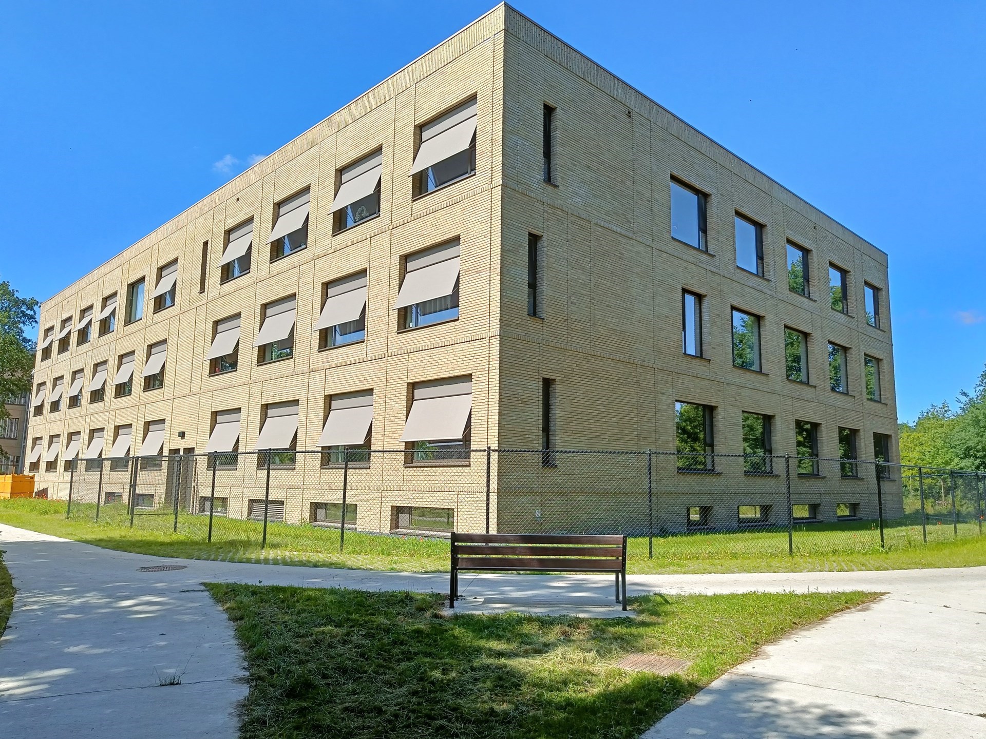 Het totaalpakket van studies voor de gefaseerde vervangingsnieuwbouw van WZC Sint-Antonius in Peer – stabiliteit, gebouwtechnieken én duurzaamheid – werd verzorgd door Macobo-Stabo. Technisch uitdagende projecten zijn dagelijkse kost voor dit multidisciplinaire studiebureau met vestigingen in Tessenderlo, Leuven en Antwerpen. “Na een uitgebreide geothermische voorstudie en een bezoek aan een referentieproject is er in samenspraak met de bouwheer geopteerd voor een KWO-installatie”, vertelt projectleider gebouwtechnieken Miche Wassink. “Zo kan het woonzorgcentrum de energie in de bodem duurzaam benutten en kan de koudevraag volledig gedekt worden via free cooling, onder meer aan de hand van betonkernactivering. Wat WZC Sint-Antonius bijzonder maakt, is dat ook de kamers passief gekoeld worden met behulp van betonkernactivering en dat het systeem gekoppeld is aan een predictieve regeling op basis van de weersvoorspellingen, zodat het telkens tijdig kan worden ingeschakeld via het gebouwbeheersysteem. In combinatie met zonwerende screens, vloerkoeling in de gemeenschappelijke delen en gekoeld ingeblazen ventilatielucht garandeert dit de bewoners een optimaal comfort, zelfs tijdens een aanhoudende hittegolf (zoals reeds gebleken is in de zomer van 2020). Daarnaast is de KWO-installatie eveneens gekoppeld aan een verwarmingssysteem op basis van gasabsorptiewarmtepompen in de centrale stookplaatsen. Het sanitair warm water wordt voorverwarmd via de KWO om de duurzame geothermische energie zo optimaal mogelijk te benutten. Bovendien produceren zonnepanelen op het dak de nodige groene stroom. Zo zijn we geland op een E-peil van 46.”