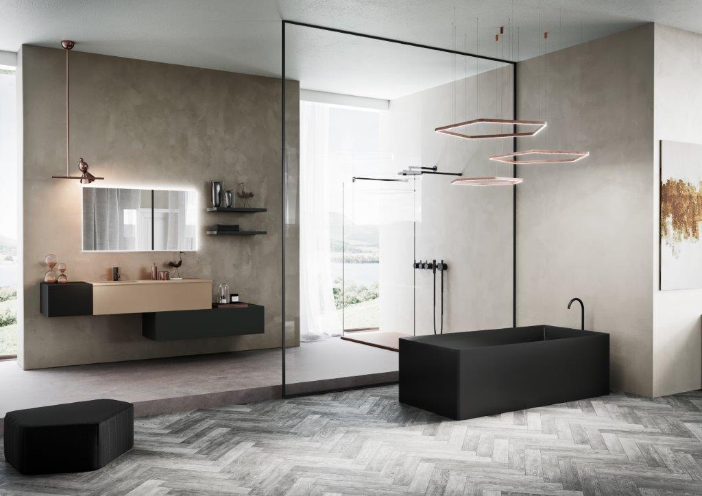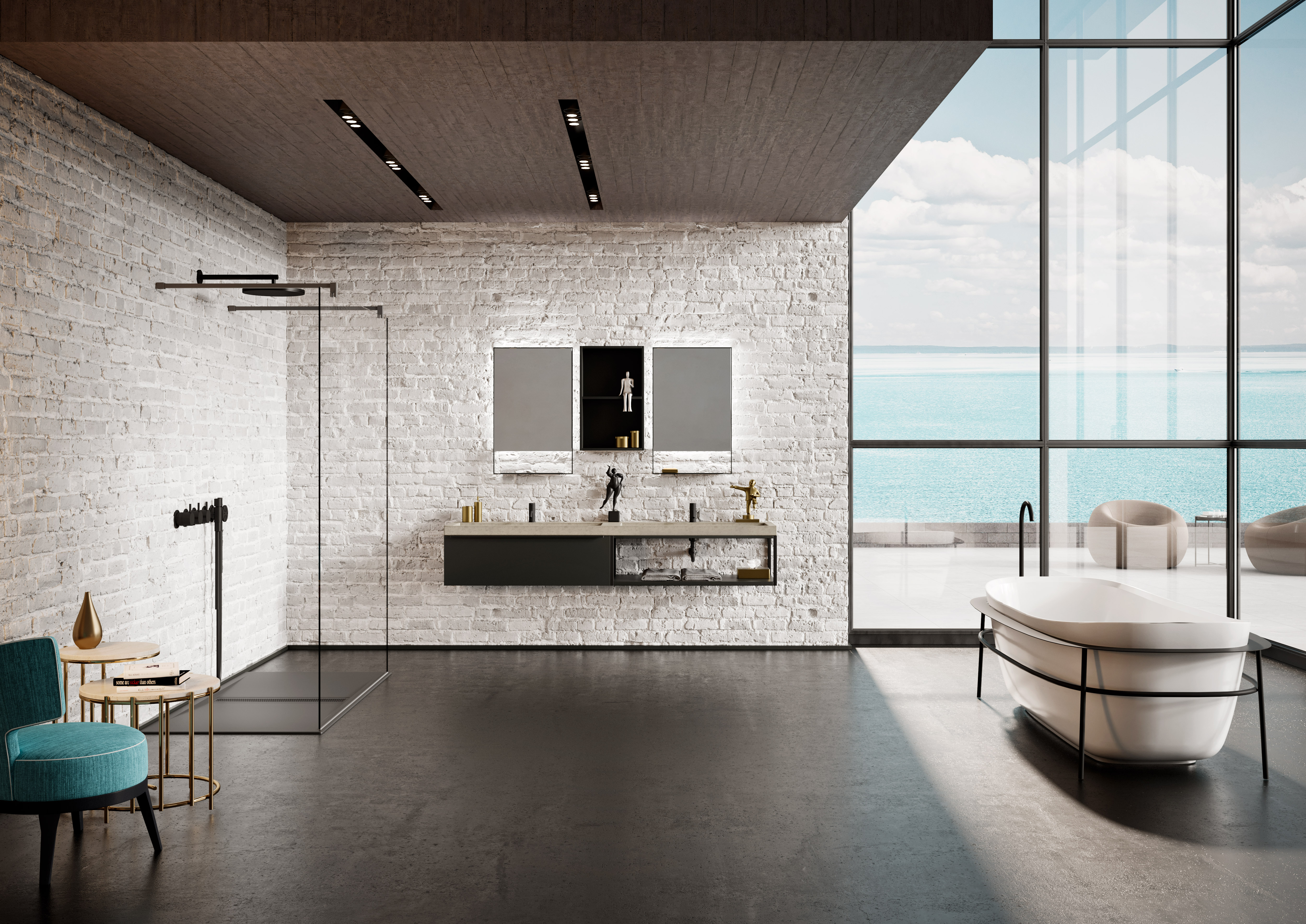 De zwarte frames in spiegels geven een heel eigentijdse touch. De actuele spiegelkasten met sensor zijn fraai om zien en bieden extra opbergruimte.