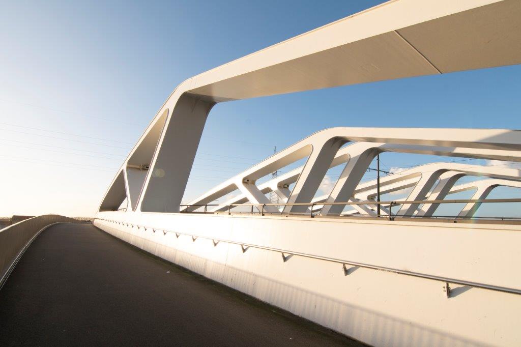De architecten van ZJA haalden alles uit de kast om de look-and-feel van de nieuwe Theunisbrug te optimaliseren. Missie geslaagd, kunnen we concluderen. “Met dank aan de constructieve houding van De Vlaamse Waterweg, dat ons uitstekend ondersteunde in die zoektocht naar perfectie”, benadrukt Ralph Kieft. “Zelfs de vangrails maakten integraal deel uit van het ontwerp. Een ander detail dat cruciaal is voor het totaalbeeld is de lichtjes uitstekende boven- en onderplaat van de kokerliggers van de bruggen, zodat het lijnenspel extra tot uiting komt. Ook de positie van de voet- en fietspaden is geoptimaliseerd in de hoogte, zodat de liggers van de brug de nodige beschutting bieden en fietsers niet te steil hoeven te klimmen en ongestoord van het mooie uitzicht over de kanaalzone kunnen genieten."