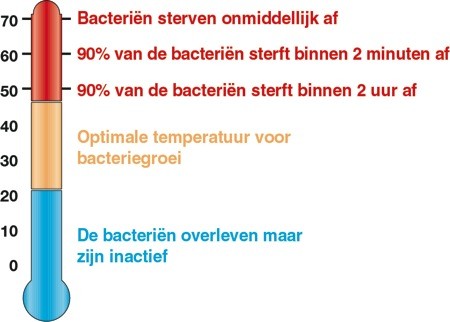 - Zorg ervoor dat uw warm water steeds warmer is dan 60°C.