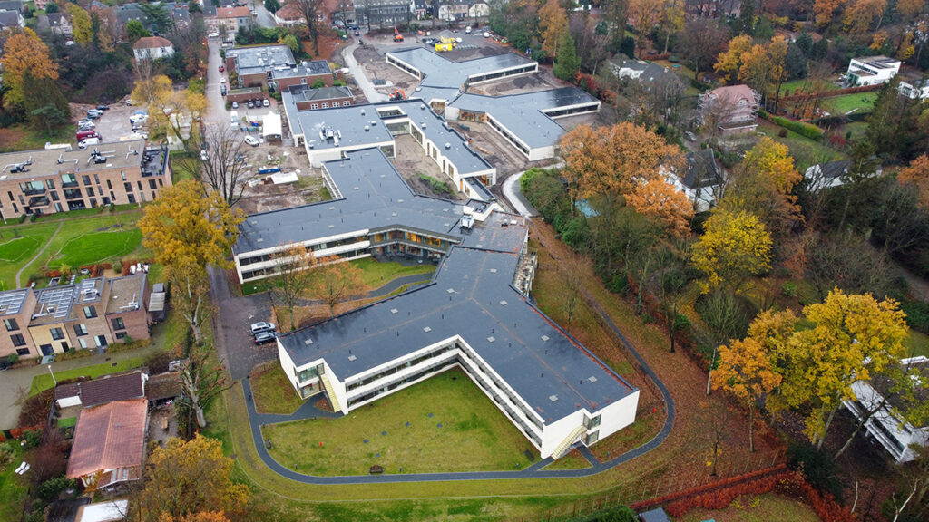 Woonzorgcentrum Welvaart in Kapellen maakt deel uit van WoonZorgCollectief, een samenwerkingsverband tussen tien woon- en zorgcentra voor ouderen in de provincie Antwerpen. Sinds 2022 kunnen de bewoners van WZC Welvaart van hun oude dag genieten in gloednieuwe gebouwen. Voor het ‘dak boven hun hoofd’ schakelde hoofdaannemer Hooyberghs Dakrubbercentrale in. En dat was geen toeval, want dit Antwerpse dakdekkersbedrijf heeft ondertussen 27 jaar ervaring met de EPDM-membranen van Elevate.