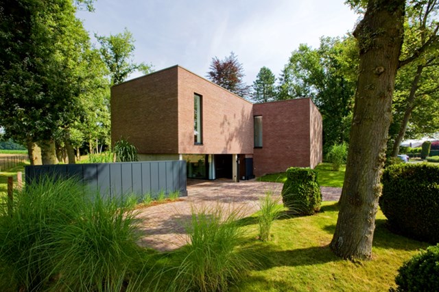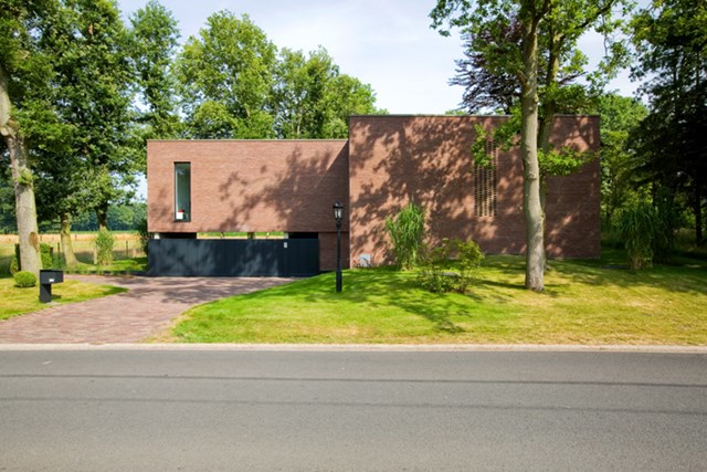 De woning is ingepast in de buurt en gaat op in de glooiingen van het terrein en de kleuren van de omgeving. Bij het tuinontwerp is ook de bomenwal behouden en zijn er accenten gelegd met minimale ingrepen.