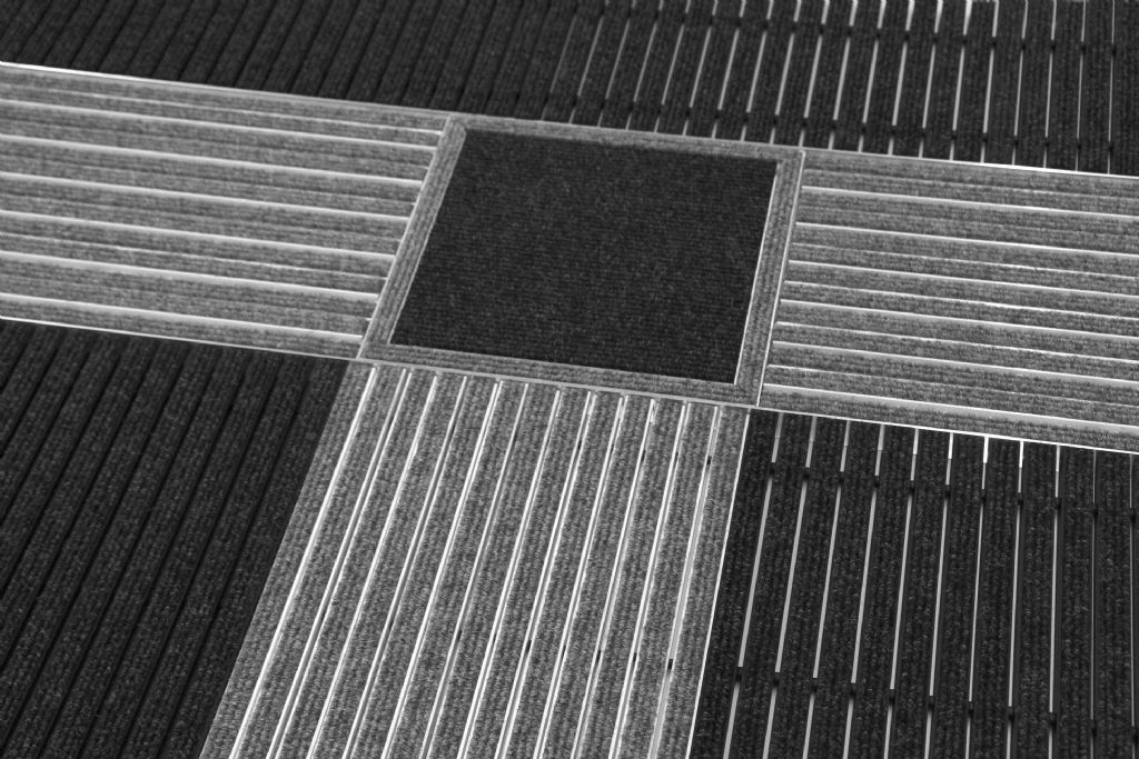 De inlagen van de entreemat zijn van slijtvaste, verrottingsvaste tapijtstroken (grove vezel) in de kleur antraciet of van gekarteld zwart rubber. De slipvastheid voldoet aan kenmerk R9 (rvs tegel), R11 (tapijtstrook inlage) en R9 (rubber inlage) conform DIN 51130. De entreemat is geschikt voor rolstoelen, kinderwagens en transportkarretjes.