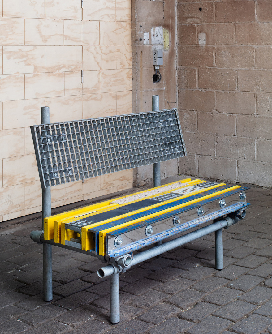 De bank is samengesteld uit bouwelementen afkomstig van diverse projecten die Wieërs doorheen heel Vlaanderen tijdens de afgelopen vijf jaar heeft begeleid: tegels uit het Gentse SMAK, een gevelsteen en marmeren fragment uit het Instituut voor Tropische Geneeskunde in Antwerpen, stellingmateriaal dat werd gebruikt voor de bouw van een tijdelijk paviljoen bij het Rubenskasteel in Zemst en een fragment van de kunstinterventie van Kasper De Vos in het herbestemde Montfortanenklooster te Kontich. Het unieke meubel is demonteer- en verplaatsbaar en kan een plek krijgen in een gedeelde tuin of in de publieke ruimte.