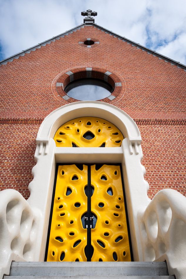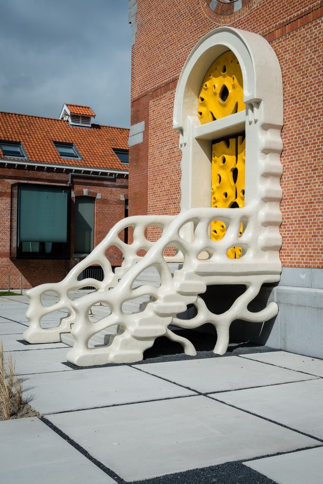 Het indrukwekkende kunstwerk van Nick Ervinck kan je bewonderen aan de hoofdingang van de kapel op de site van het Militair Hospitaal in Oostende. De kunstenaar is erin geslaagd om het oorspronkelijke karakter van de kapel te behouden, maar voegt er een nieuwe dimensie aan toe. De jury Merit CoD+A Award prees het eigentijdse design en de opvallende materiaalkeuze. De buitensculptuur werd volledig digitaal ontworpen, maar ambachtelijk (uit polyester) gemaakt. De symbiose tussen nieuwe technieken en het oude gebouw zorgt voor een speciaal effect.