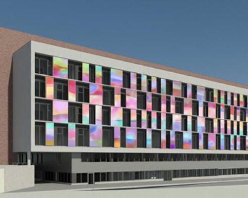 “Wat wij bijvoorbeeld met de Bibliothèque Marguerite Yourcenar in Parijs hebben gedaan, is daar een mooi voorbeeld van”, voegt Filip Meganck daar aan toe. “Daar is zonwering gebruikt als esthetisch onderdeel van de gevels. Door te werken met verschillende kleuren maakt het de gevel net mooi.”