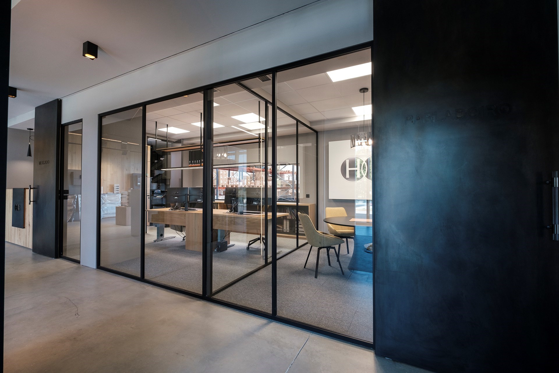 Herrajes Formo-3 is groot- en detailhandelaar in ijzerwaren, meer bepaald in accessoires voor houten meubelen en keukens. Voor de indeling van hun kantoren en vergaderzalen koos het bedrijf voor de divina vaste glazen wanden en divina met geïntegreerde draaideur. De scharnieren van de draaideur zijn onzichtbaar weggewerkt zodat de pure, architecturale belijning overeind blijft. Dankzij deze glaswanden worden ruimtes eenvoudig opgedeeld zonder een verlies aan licht of openheid. De innovatieve aluminium structuur en het glas zorgen voor een industriële, minimalistische look die perfect past in zowel woningen als in bureaus, hotels en restaurants. Door de combinatie van een vaste wand met een draaideur wordt de opgedeelde ruimte ook toegankelijk via een deur die naar wens of situatie open of dicht kan. Aan het woord is José Manuel Rozados, ceo van Herrajes Formo-3 in A Estrada (Spanje).