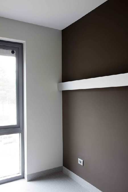 Zowel voor alle bacteriegevoelige ruimtes, als voor de patiëntenkamers en de garage, opteerde de opdrachtgever voor Sikkens Alpha SanoProtex. Deze binnenmuurverf op waterbasis bevat actieve zilverionen die ervoor zorgen dat bacteriën zich niet kunnen vermenigvuldigen. Alpha SanoProtex is doeltreffend tegen diverse schadelijke bacteriestammen, die zelfs resistentie ontwikkeld hebben tegen de gebruikelijke antibiotica. Ook de hoge duurzaamheid en afwasbaarheid van de verflaag dragen bij tot smetteloos schone muren. In totaal werd 3500 m² muuroppervlakte behandeld met dit antibacteriële verfsysteem.