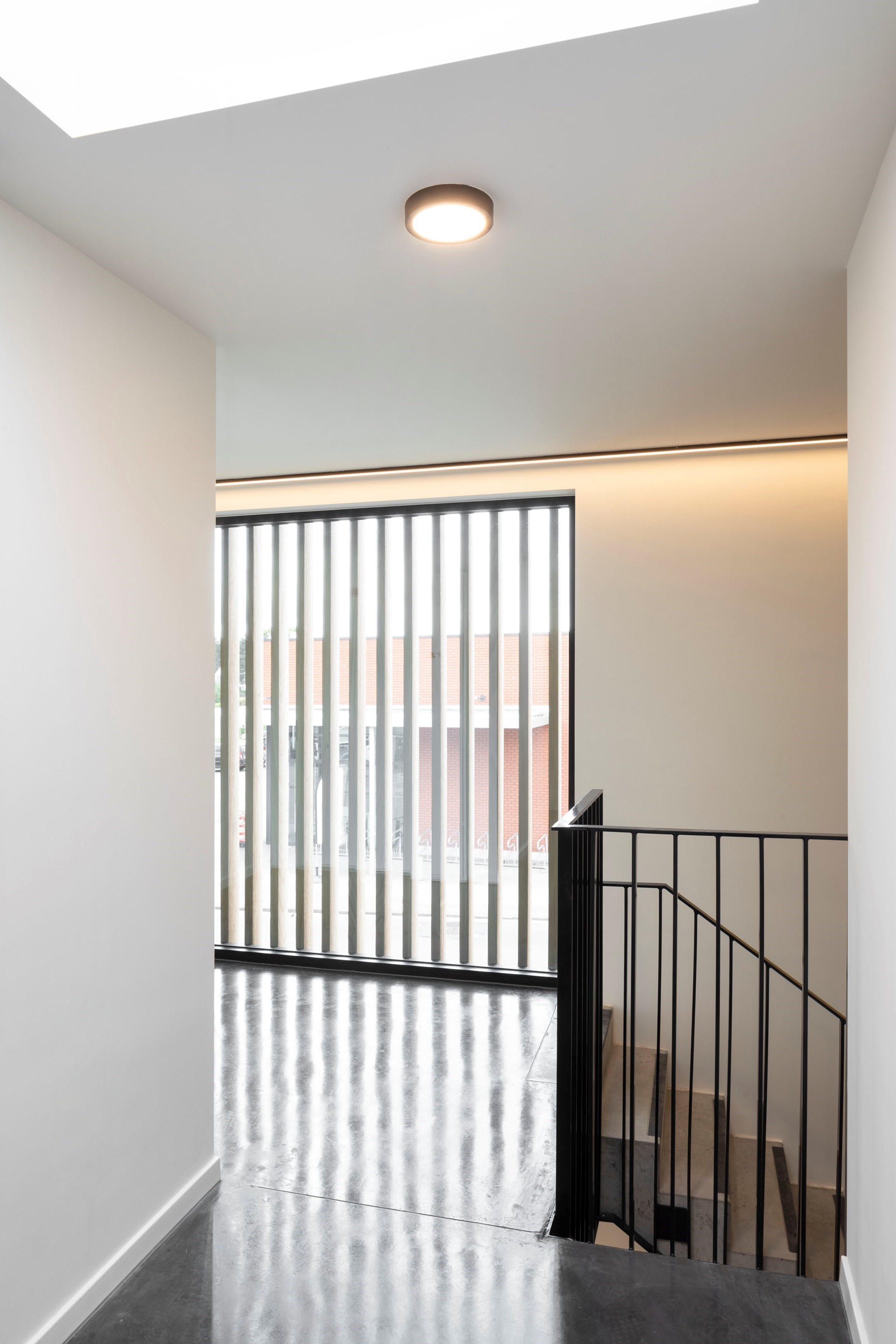 Het project werd gerealiseerd op een moeilijk perceel. Het uitgebreide programma van eisen en de grillige perceelsgrens achteraan dwongen ons om vindingrijk om te gaan met de beperkte ruimte. Het ingesloten karakter van het perceel, dat omringd is met woningen, vormde een extra uitdaging om het private en introverte karakter van een uitvaartcentrum te verzoenen met zijn context.