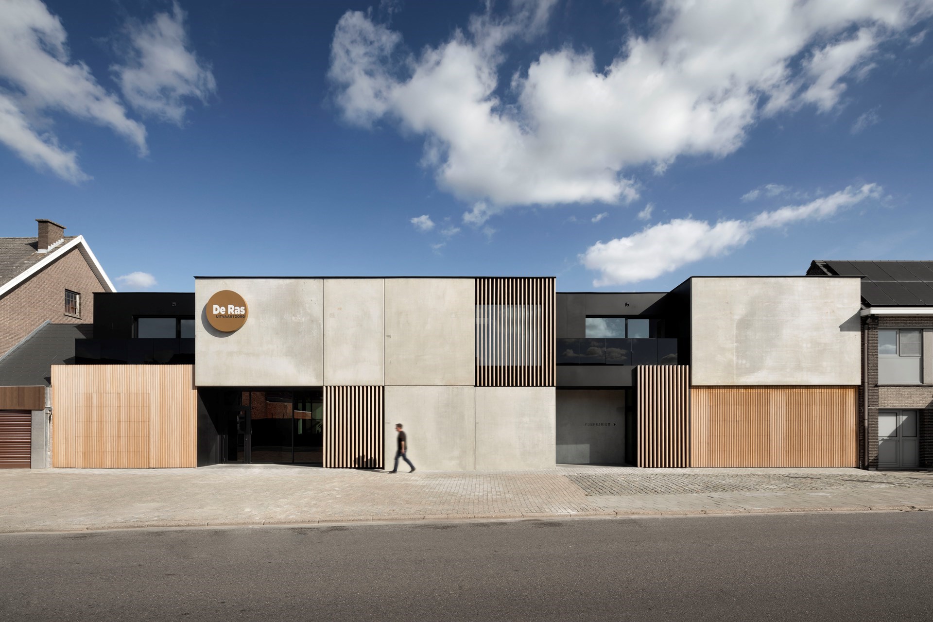 Uitvaarten De Ras koesterde de ambitie om uit te breiden met een nieuwe vestiging in Berlare. TRANSFORM Architectuur ontwierp voor het bedrijf een hedendaags uitvaartcentrum in een verfijnde, tijdloze architectuur.