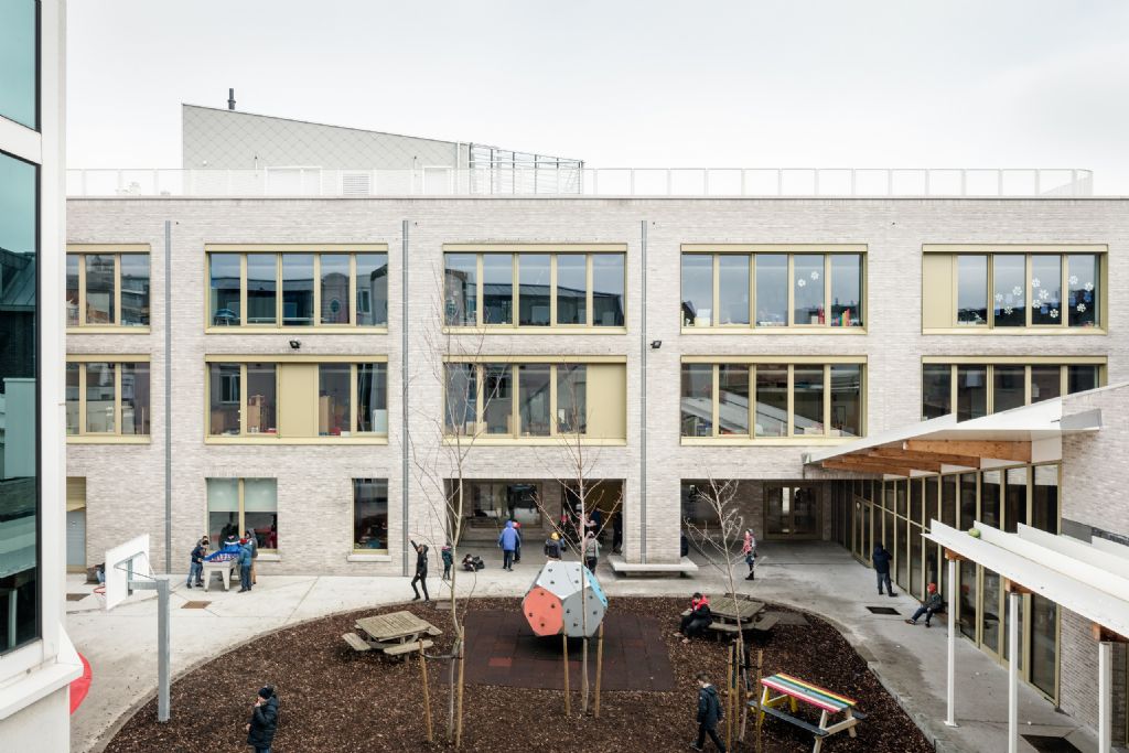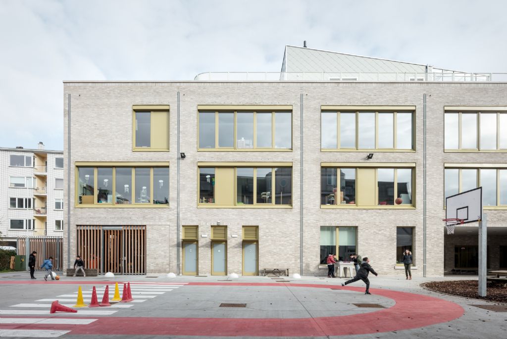 Het resultaat is een brede school specifiek voor het onderwijs dat er wordt aangeboden maar die zich toch toont en openstelt aan de buurt. Om toch zoveel mogelijk buitenruimte te realiseren op een beperkte oppervlakte in stedelijk gebied, is een toegankelijke buitenklas met serre en moestuinbakken op het groendak voorzien.
