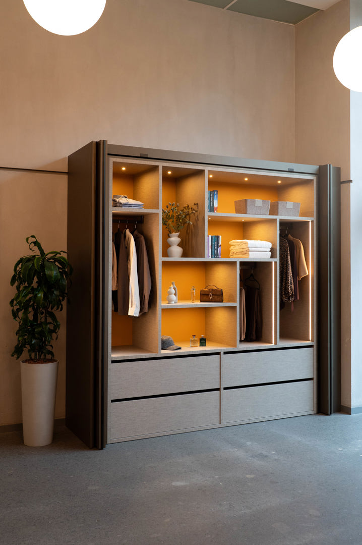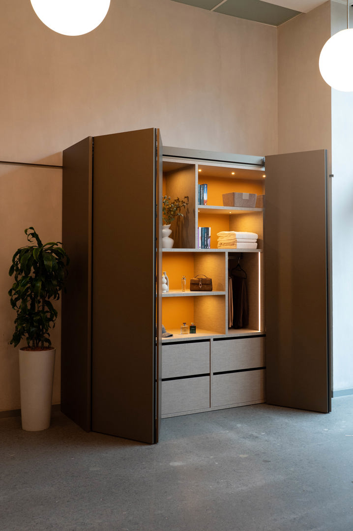 - Inspiratie & support – In de DecoLegno-showroom in Kampenhout kunnen bezoekers stalen ontdekken, persoonlijk advies krijgen en een kast met het REVEGO-systeem live zien én uitproberen, zodat materialen en mechanisme ter plaatse kunnen worden beleefd.