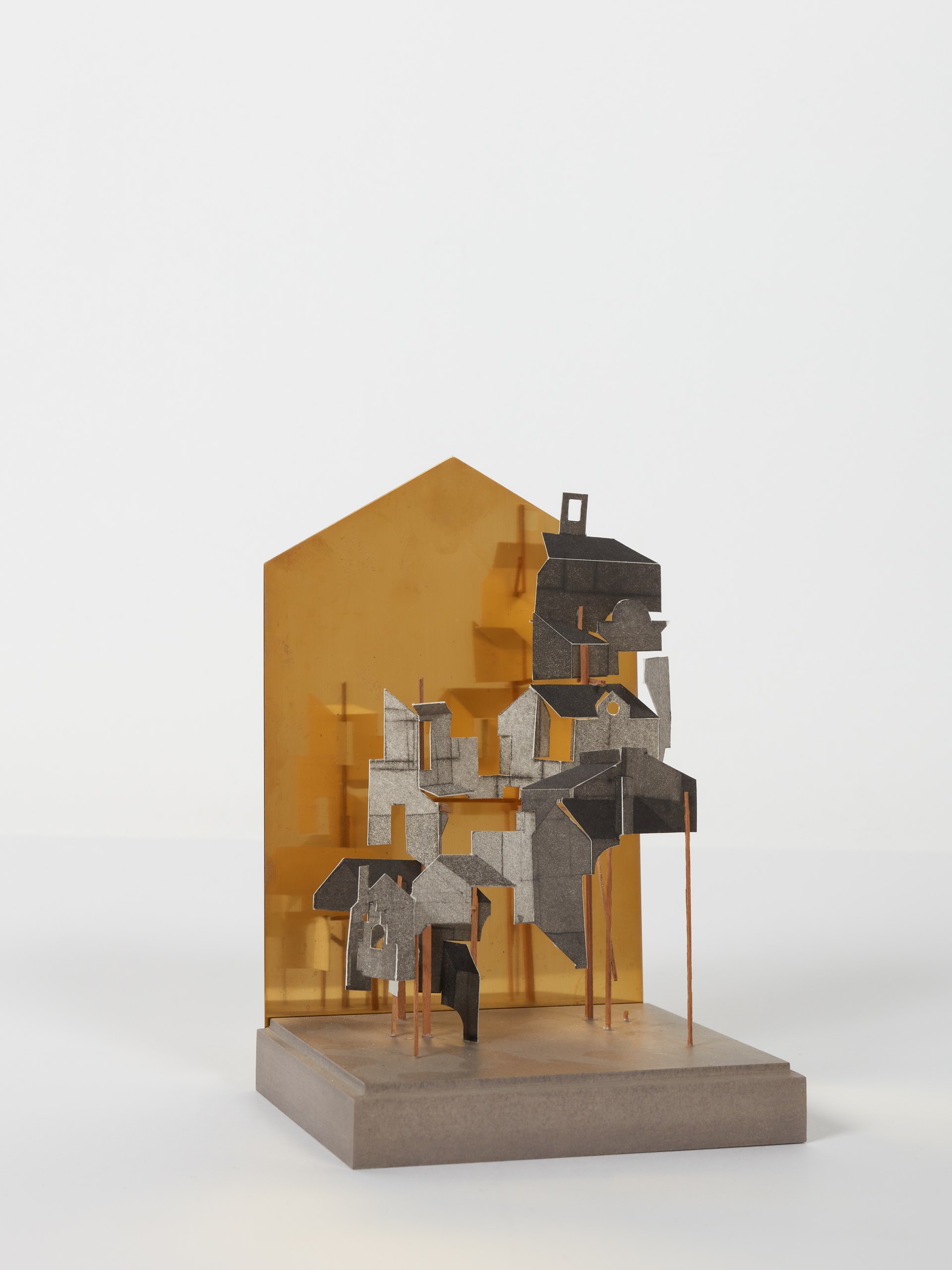 Voor Olchowska hebben huizen, straten en pleinen verschillende betekenislagen: “De structuren die je ziet, vertellen iets over het verleden én de toekomst van een stad. De manier waarop we die plekken bekijken, verandert sterk doorheen de tijd en hangt vaak af van de tijdsgeest”. Een thema dat in haar werk steeds terugkomt is ‘het landschap’. Doorheen de jaren heeft ze zich toegelegd op het bestuderen van verschillende soorten landschappen en de tijdelijkheid ervan. Olchowska: “Gaandeweg begon ik bestaande stadslandschappen te assembleren tot een soort nieuwe anonieme stad die toch herkenbaarheid oproept.” De perceptie van herkenbaarheid in combinatie met het collectieve geheugen, fascineert haar: “Ons brein ziet iets en maakt daar een reconstructie van op basis van zaken die we vroeger hebben gezien of meegemaakt. Mijn werk ontstaat ook zo, het is opgebouwd uit geconstrueerde beelden.”