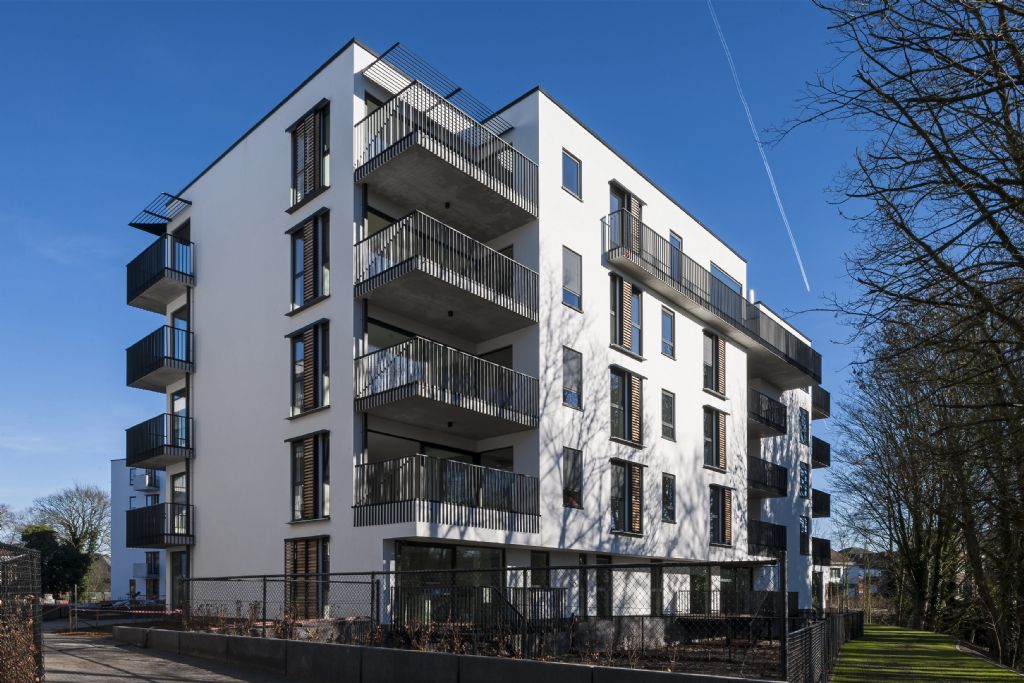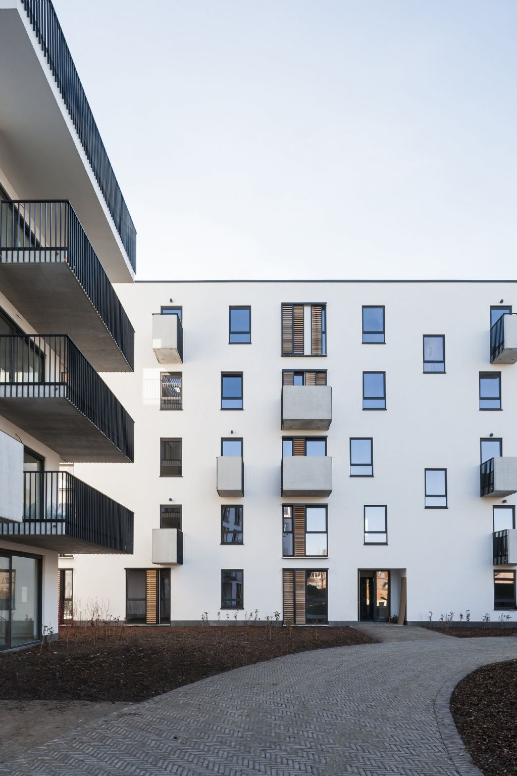 In april werd de laatste fase van het project officieel ingehuldigd. Het betreft een appartementsgebouw met 25 wooneenheden voor Woonpunt Zennevallei, gesteund door de Vlaamse Maatschappij voor Sociaal Wonen. Het ontwerp van het appartementsgebouw is eenvoudig en robuust en ieder appartement is uitgerust met een condenserende gaswandketel voor verwarming en sanitair, en warmwaterproductie in combinatie met een ventilatiesysteem type C+.